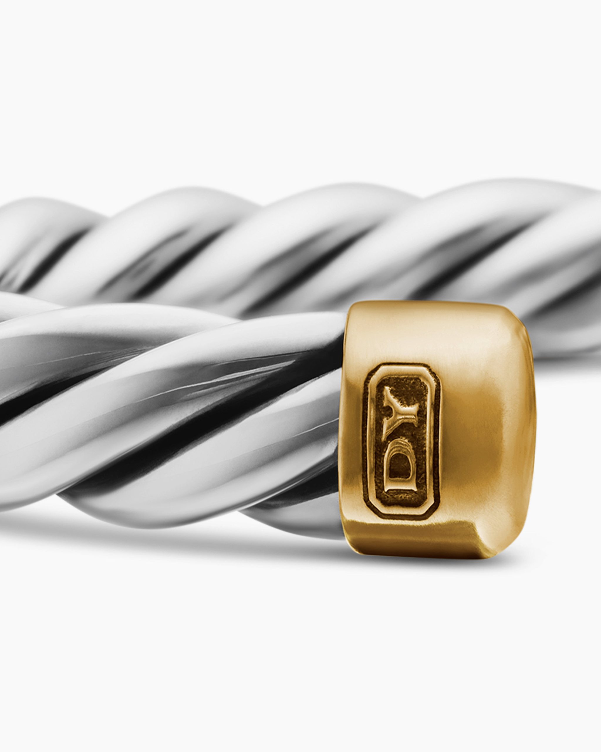 David Yurman’s artistic signature, Cable began as a bracelet that he hand-twisted from 50 feet of wire. For the past 30 years, he has evolved the twisted helix into a myriad of designs. Sterling silver with 18-karat yellow goldBracelet, 6mm