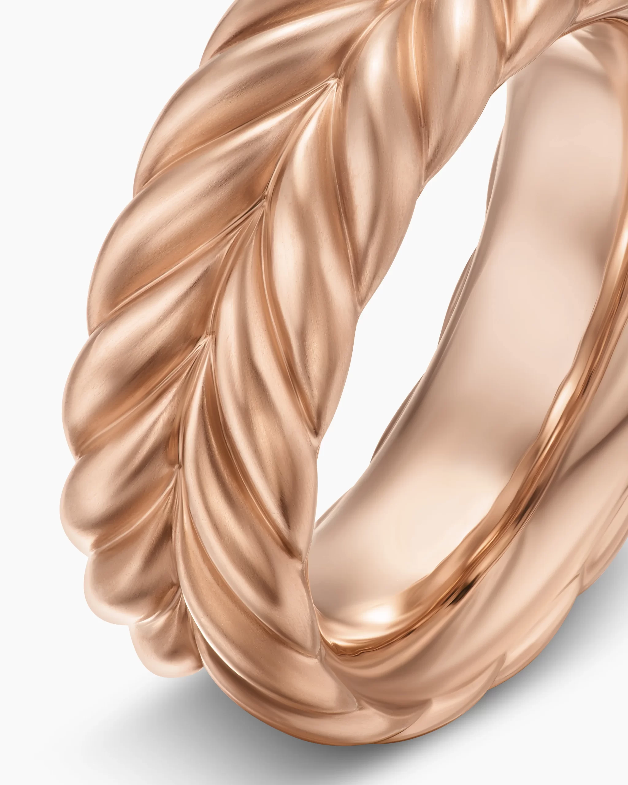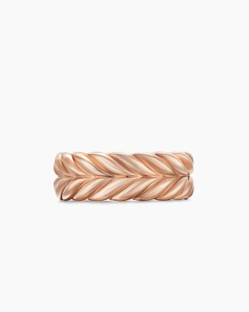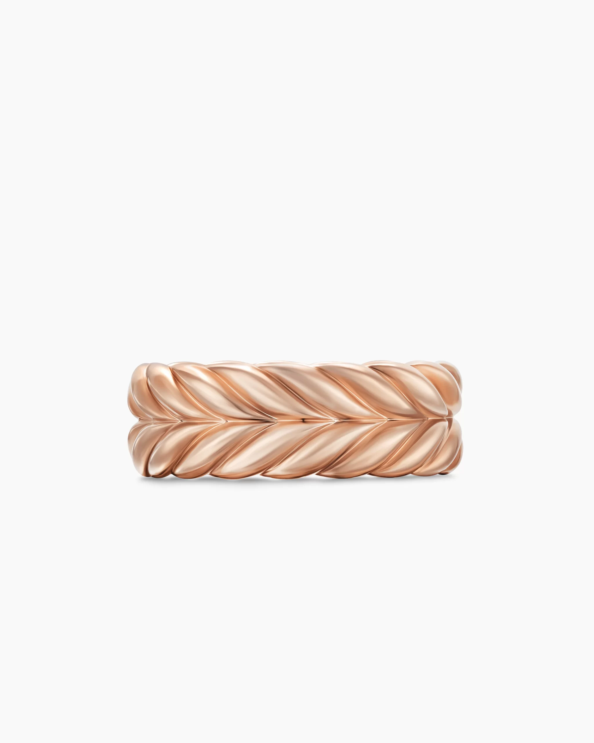 Marked by its double-helix pattern, Chevron is a mirror image of Cable, the house’s signature motif. The ancient V-shaped design offers a sense of modern sophistication, expertly crafted in refined materials, with deep cuts, precise angles, and a play of light and dark to evoke a feeling of forward momentum in the pursuit of excellence. Its elevated look fuses luxury and practicality for everyday wear, imbuing an essence of timelessness and versatility.18-karat rose goldRing, 9mmThis item can be engraved. Please contact customer care for more information.
