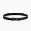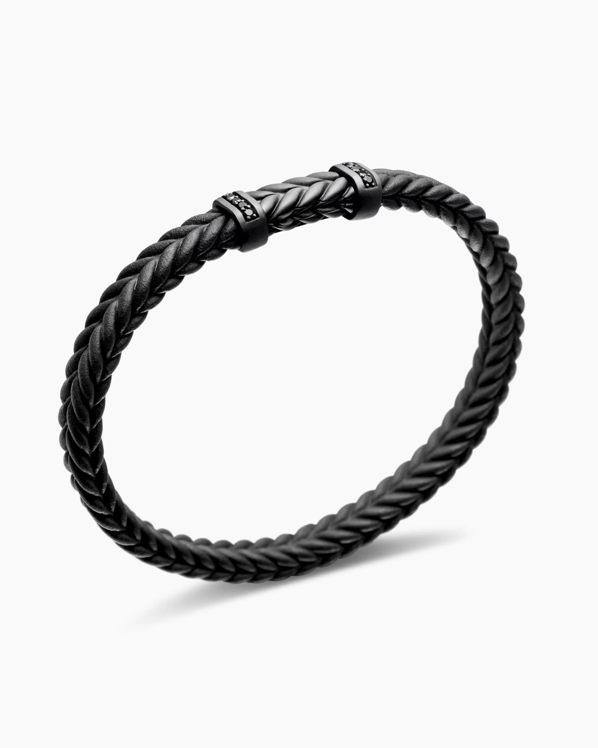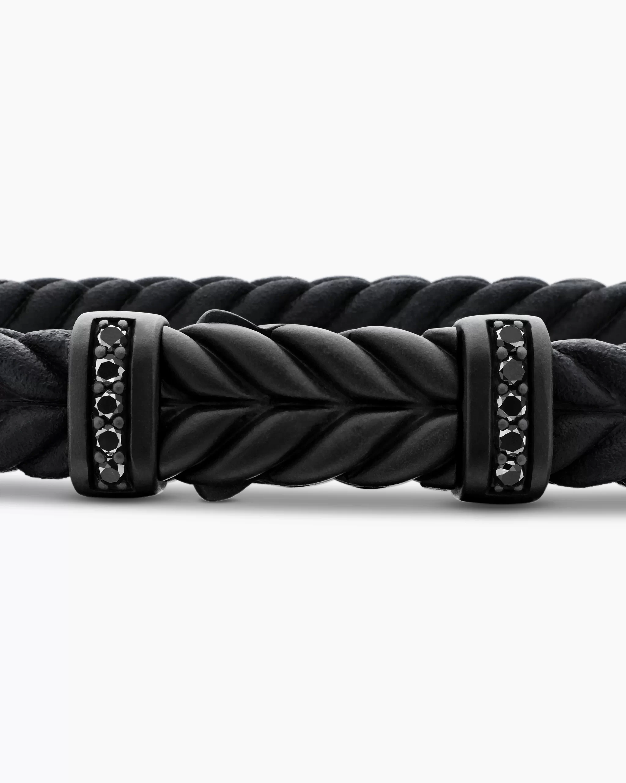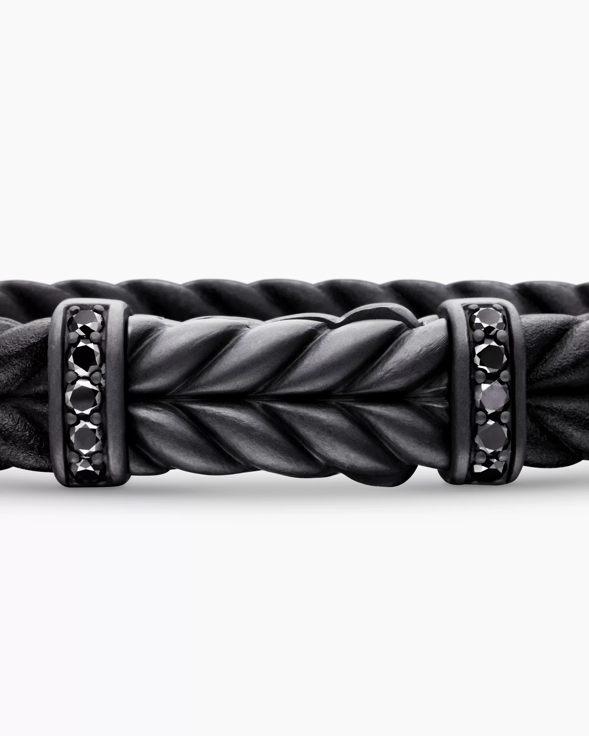 Marked by its double-helix pattern, Chevron is a mirror image of Cable, the house’s signature motif. The ancient V-shaped design offers a sense of modern sophistication, expertly crafted in refined materials, with deep cuts, precise angles, and a play of light and dark to evoke a feeling of forward momentum in the pursuit of excellence. Its elevated look fuses luxury and practicality for everyday wear, imbuing an essence of timelessness and versatility.Black titaniumBlack rubberPavé-set black diamonds, 0.14 total carat weightBracelet, 6mmChevron station, 22.4 x 8.8mmHidden hook claspSize large fits wrists up to 7.75in