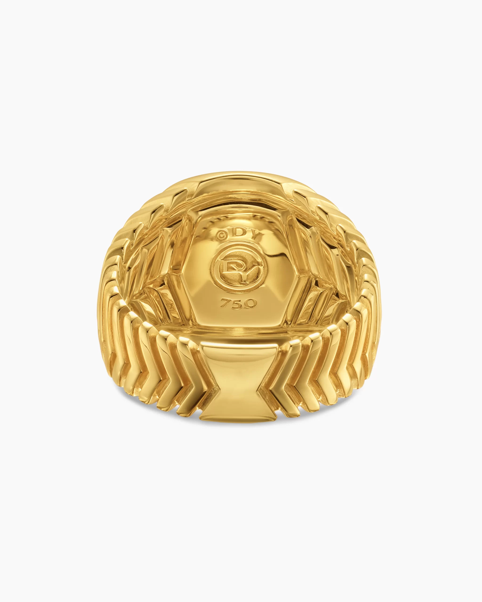 Marked by its double-helix pattern, Chevron is a mirror image of Cable, the house’s signature motif. The ancient V-shaped design offers a sense of modern sophistication, expertly crafted in refined materials, with deep cuts, precise angles, and a play of light and dark to evoke a feeling of forward momentum in the pursuit of excellence. Its elevated look fuses luxury and practicality for everyday wear, imbuing an essence of timelessness and versatility.18-karat yellow goldRing, 18mmThis item can be resized and/or engraved. Please contact customer care for more information.