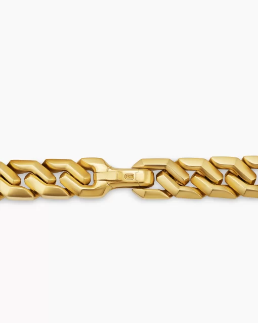 Inspired by David’s passion for horses, Curb Chain is the most elevated expression of our signature chain links. Its timeless elegance is rooted in the traditional equestrian bridle tack used to create control and stability during moments of speed. Forged precious metal is carved into Cable-like S-curves, each link crafted with impactful precision and hand-assembled with the next, culminating in a striking chain engineered for effortless movement.18-karat yellow goldBracelet, 11.5mmPush clasp
