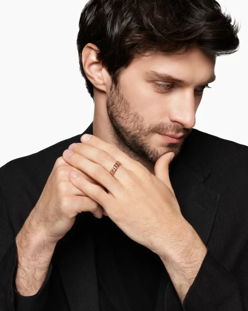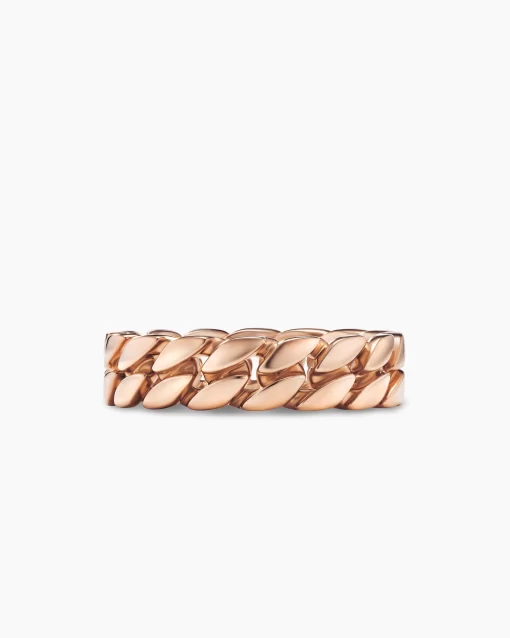 Inspired by David’s passion for horses, Curb Chain is the most elevated expression of our signature chain links. Its timeless elegance is rooted in the traditional equestrian bridle tack used to create control and stability during moments of speed. Forged precious metal is carved into Cable-like S-curves, each link crafted with impactful precision and hand-assembled with the next, culminating in a striking chain engineered for effortless movement.18-karat rose goldRing, 6mm
