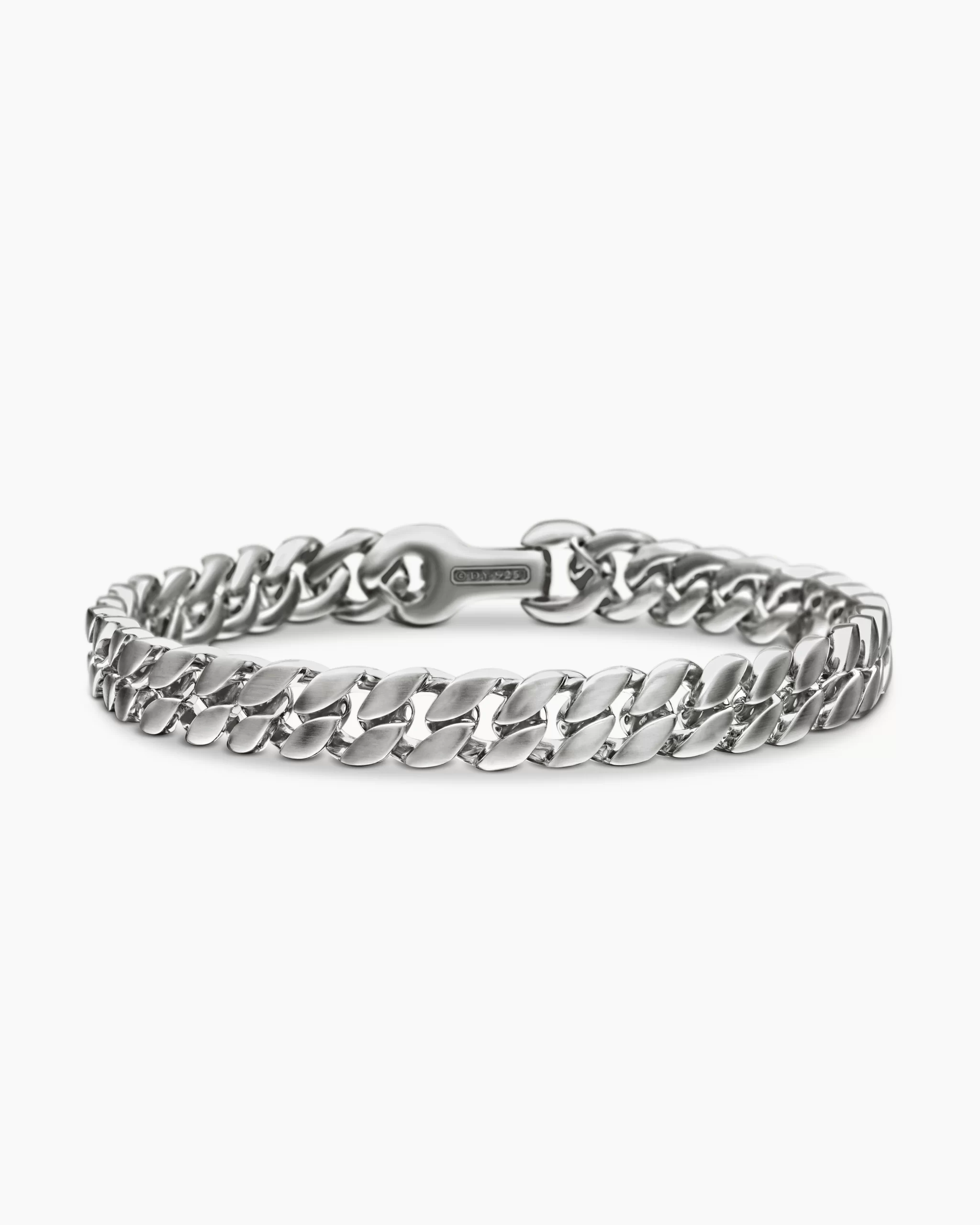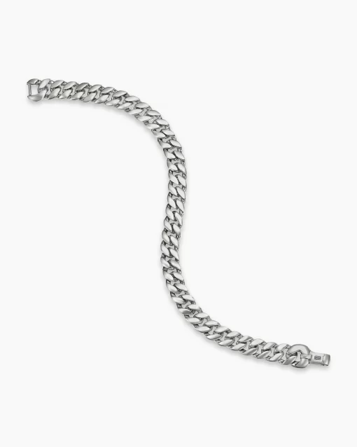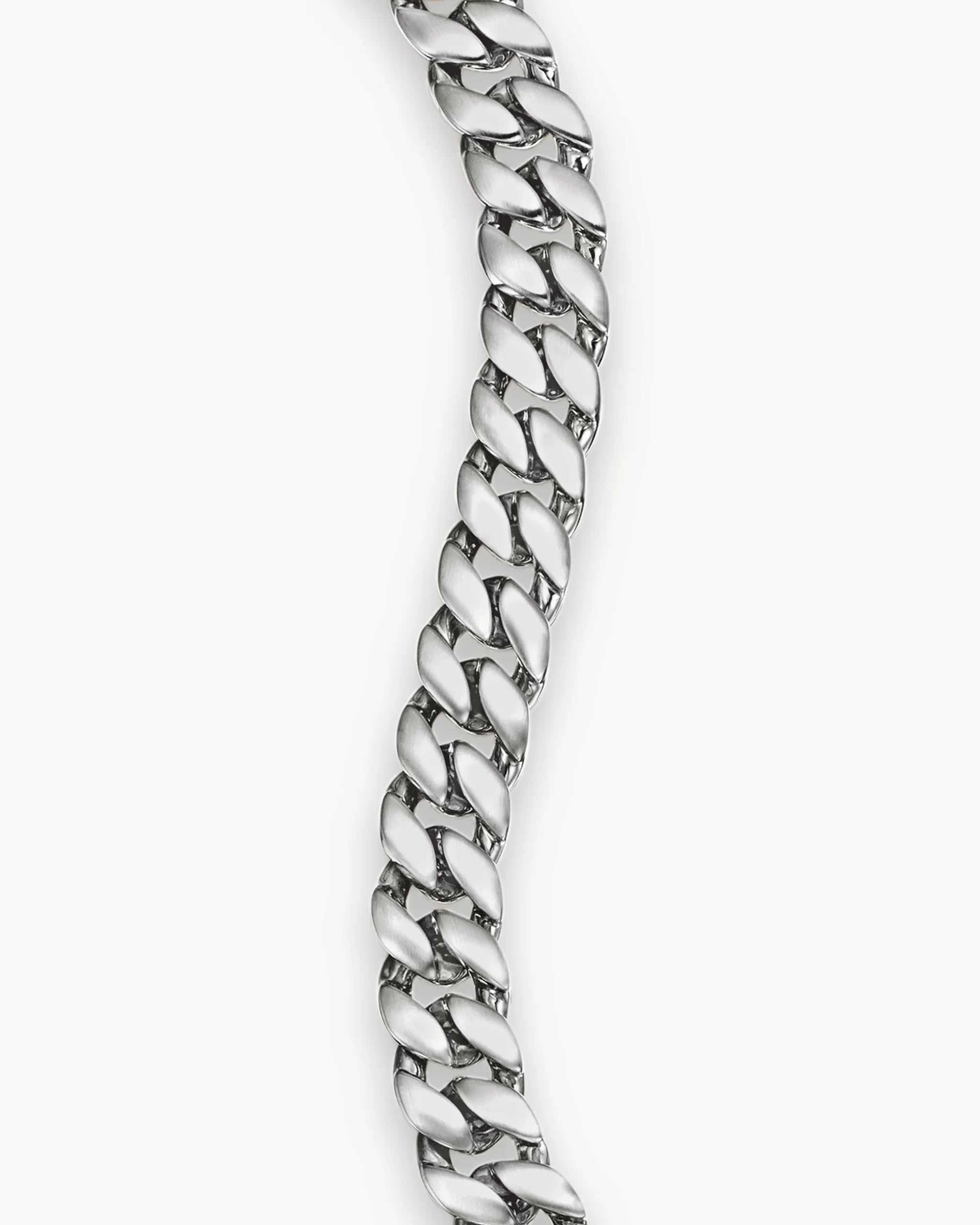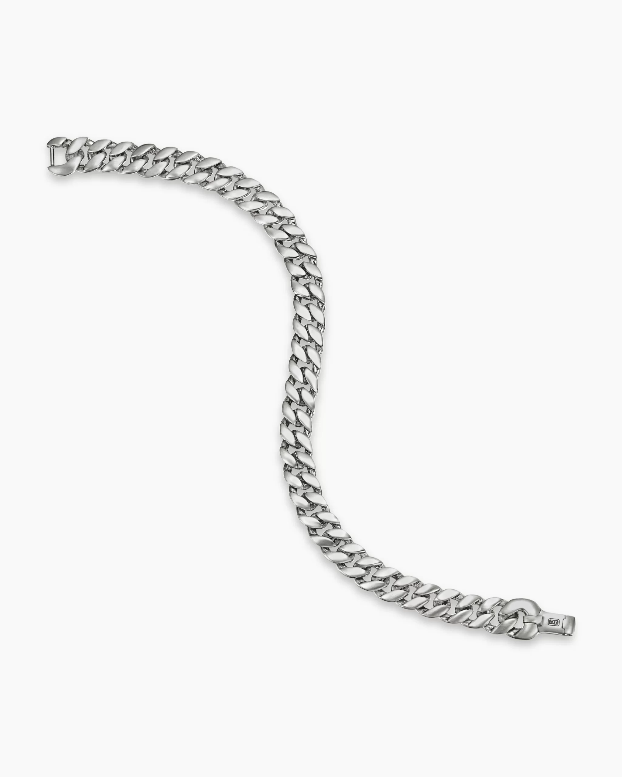 Inspired by David’s passion for horses, Curb Chain is the most elevated expression of our signature chain links. Its timeless elegance is rooted in the traditional equestrian bridle tack used to create control and stability during moments of speed. Forged precious metal is carved into Cable-like S-curves, each link crafted with impactful precision and hand-assembled with the next, culminating in a striking chain engineered for effortless movement.Sterling silverBracelet, 8mmPush clasp