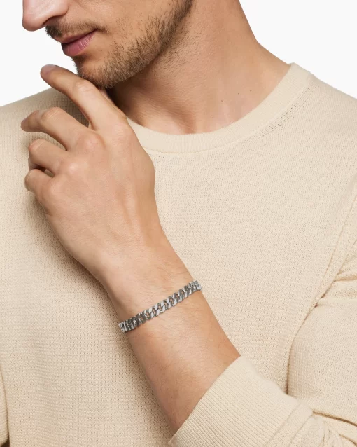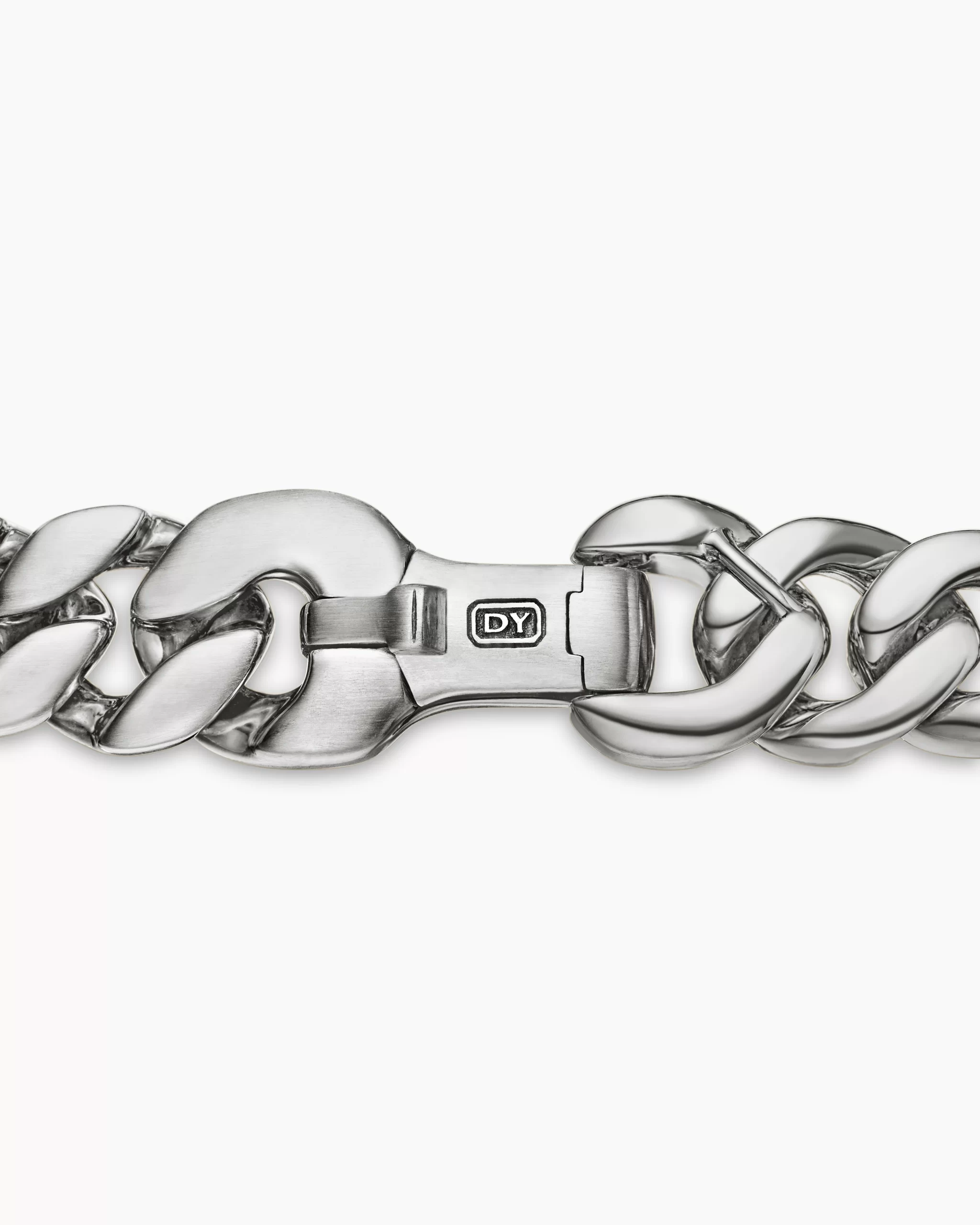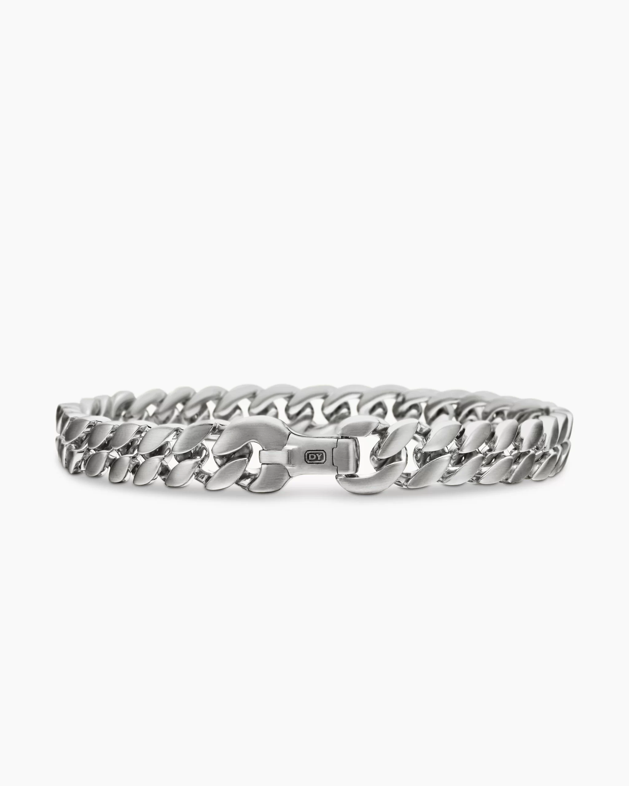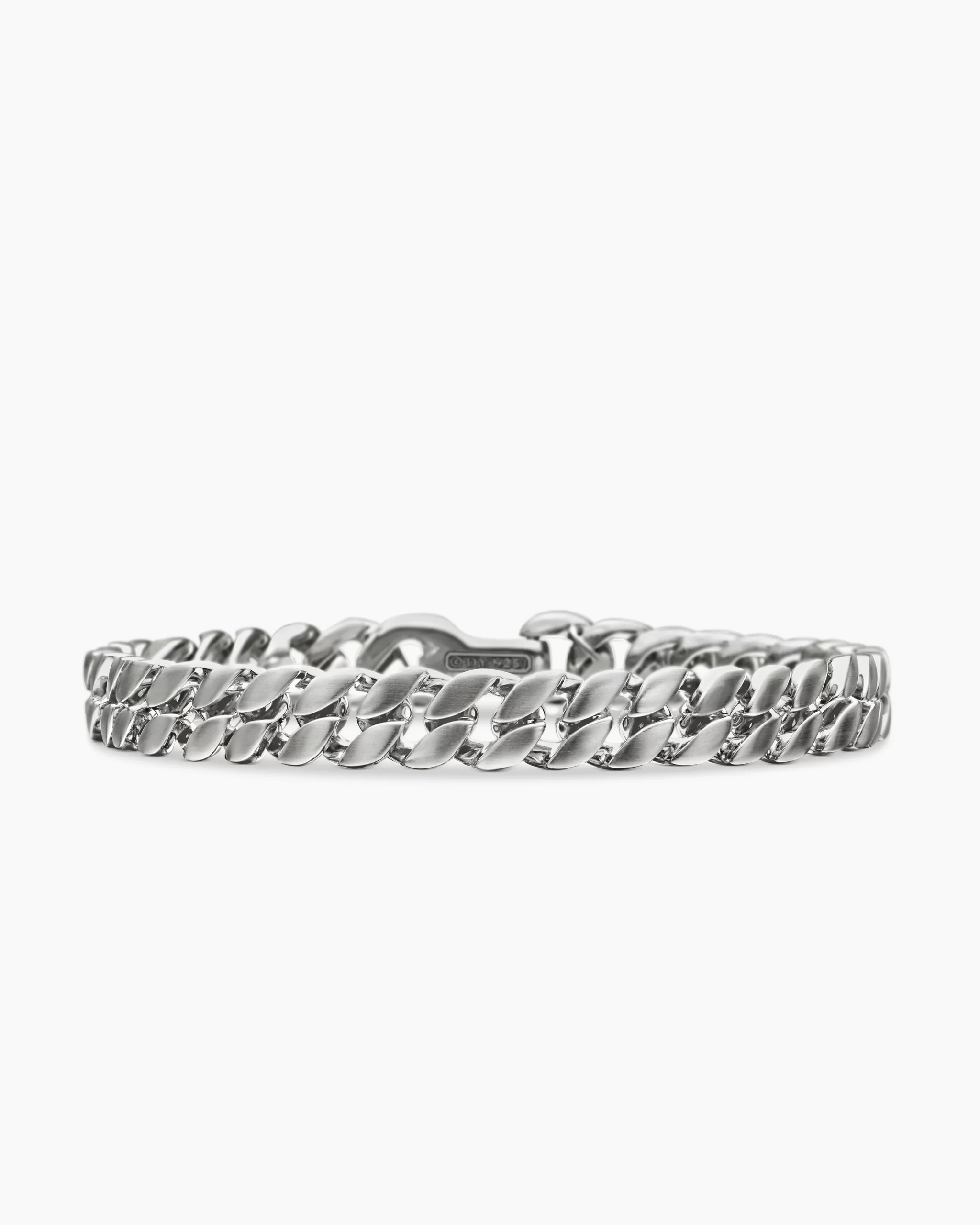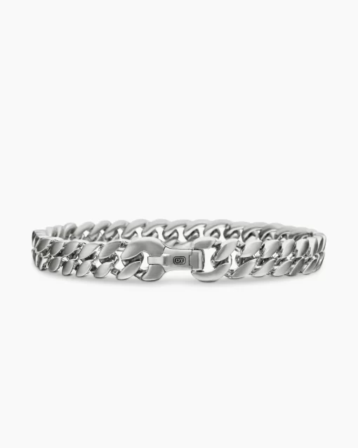 Inspired by David’s passion for horses, Curb Chain is the most elevated expression of our signature chain links. Its timeless elegance is rooted in the traditional equestrian bridle tack used to create control and stability during moments of speed. Forged precious metal is carved into Cable-like S-curves, each link crafted with impactful precision and hand-assembled with the next, culminating in a striking chain engineered for effortless movement.Sterling silverBracelet, 8mmPush clasp