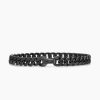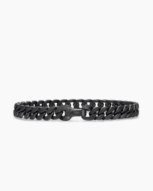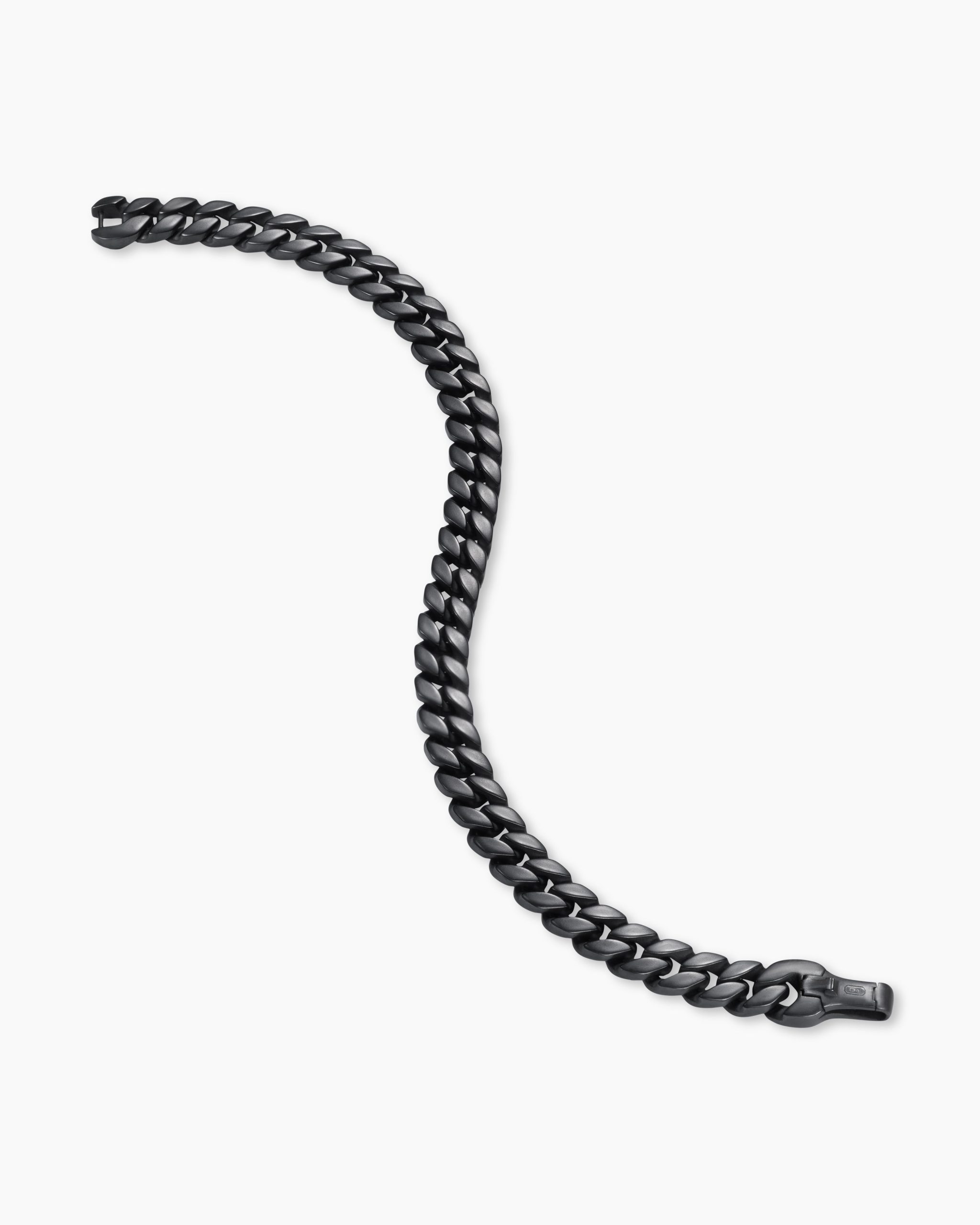 Inspired by David’s passion for horses, Curb Chain is the most elevated expression of our signature chain links. Its timeless elegance is rooted in the traditional equestrian bridle tack used to create control and stability during moments of speed. Forged precious metal is carved into Cable-like S-curves, each link crafted with impactful precision and hand-assembled with the next, culminating in a striking chain engineered for effortless movement.Black titaniumBracelet, 8mmPush claspThis item can be resized. Please contact customer care for more information.