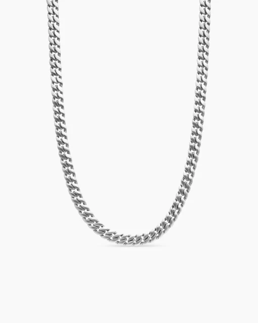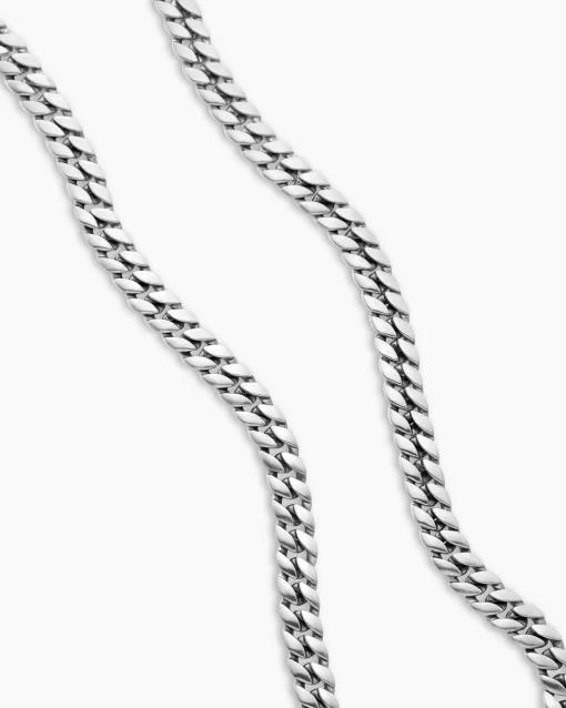 Inspired by David’s passion for horses, Curb Chain is the most elevated expression of our signature chain links. Its timeless elegance is rooted in the traditional equestrian bridle tack used to create control and stability during moments of speed. Forged precious metal is carved into Cable-like S-curves, each link crafted with impactful precision and hand-assembled with the next, culminating in a striking chain engineered for effortless movement.Sterling silverNecklace, 8mmPush clasp