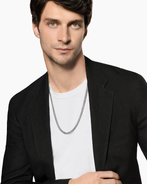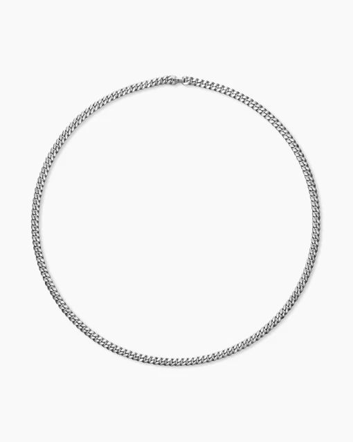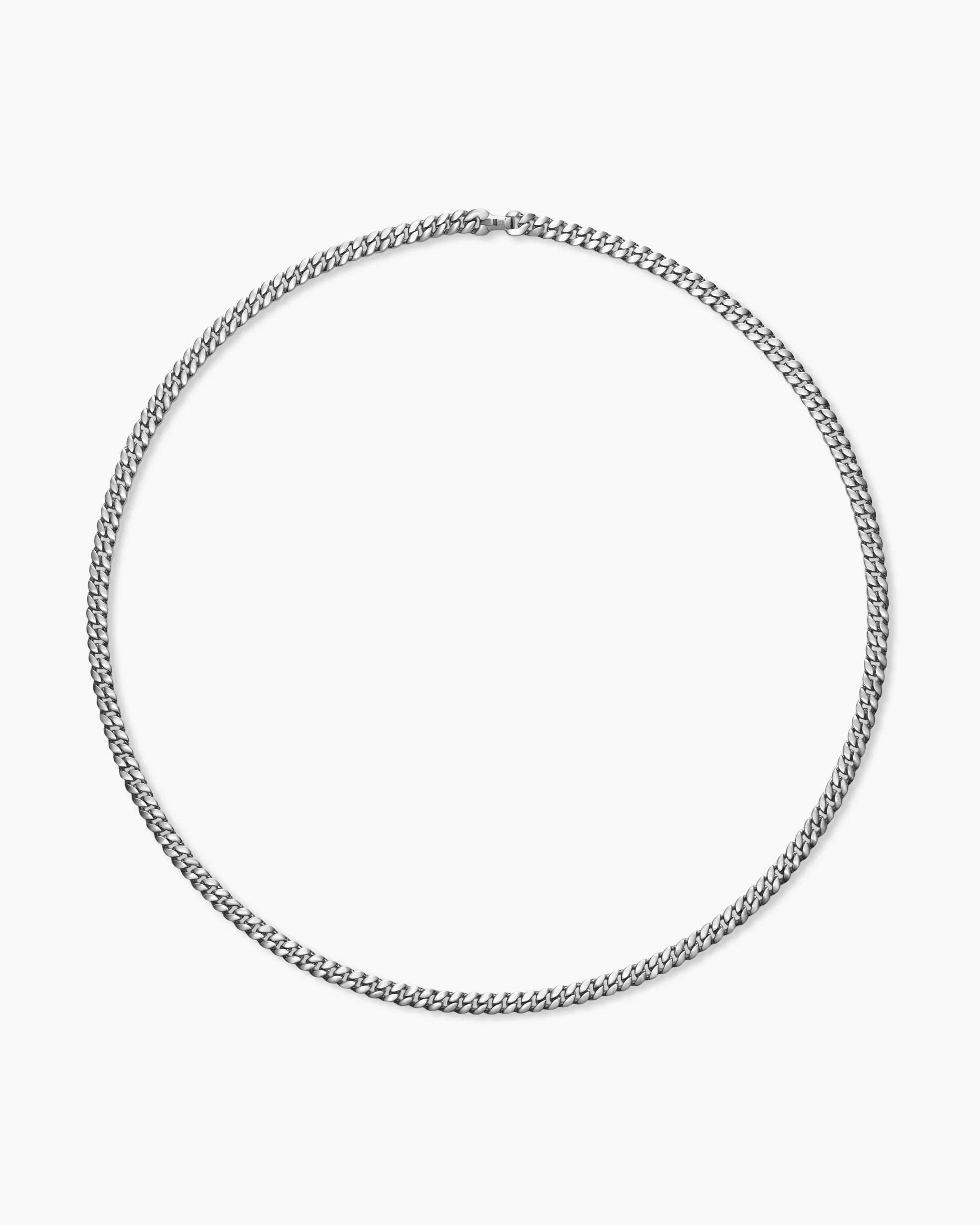 Inspired by David’s passion for horses, Curb Chain is the most elevated expression of our signature chain links. Its timeless elegance is rooted in the traditional equestrian bridle tack used to create control and stability during moments of speed. Forged precious metal is carved into Cable-like S-curves, each link crafted with impactful precision and hand-assembled with the next, culminating in a striking chain engineered for effortless movement.PlatinumNecklace, 6mmPush clasp