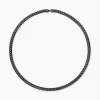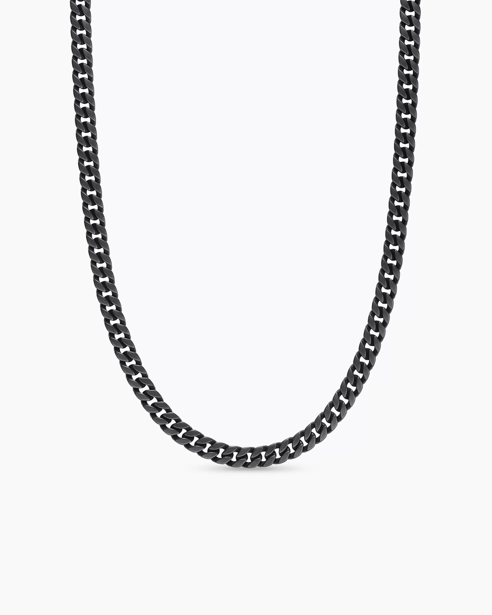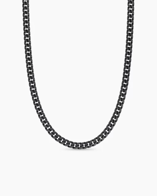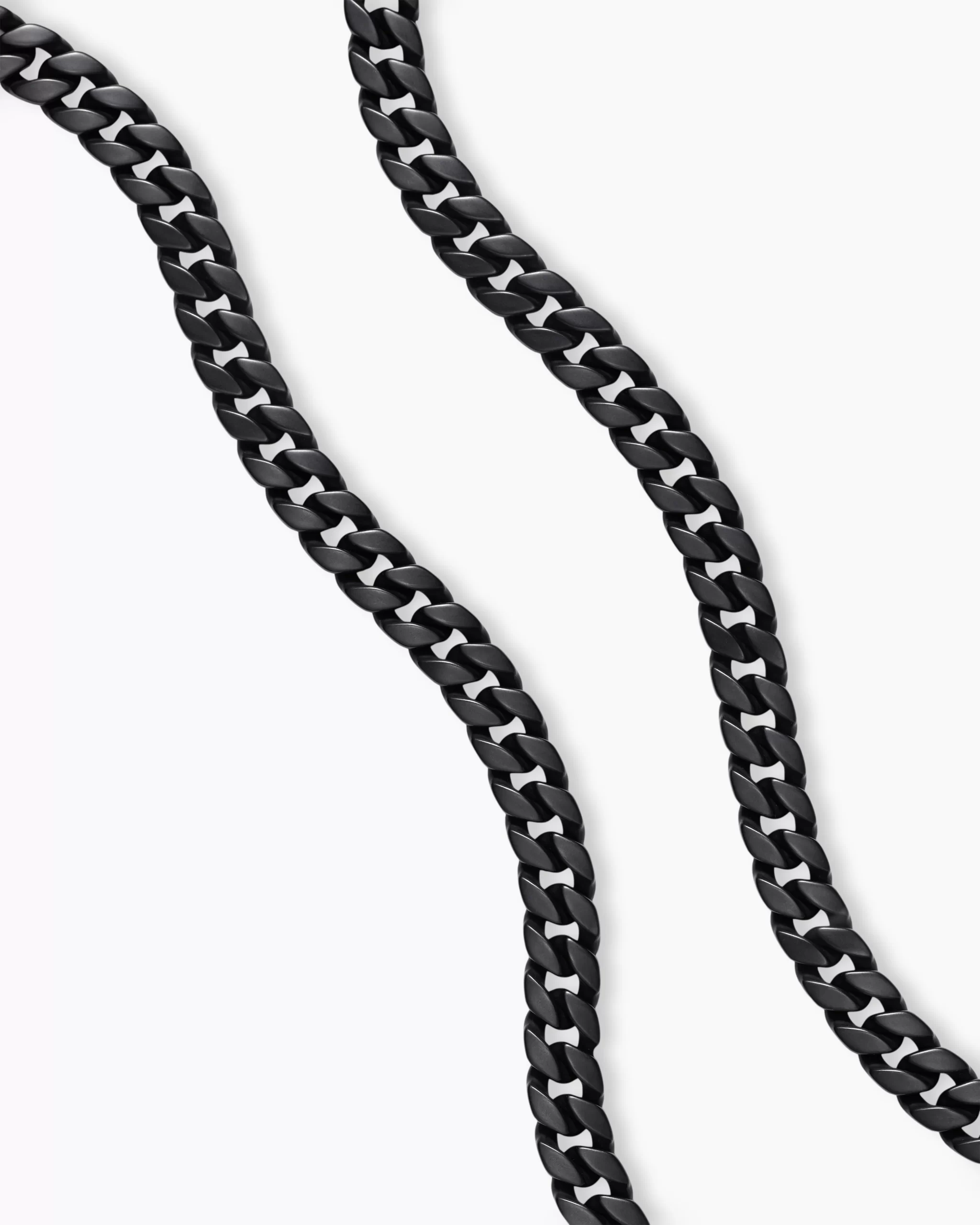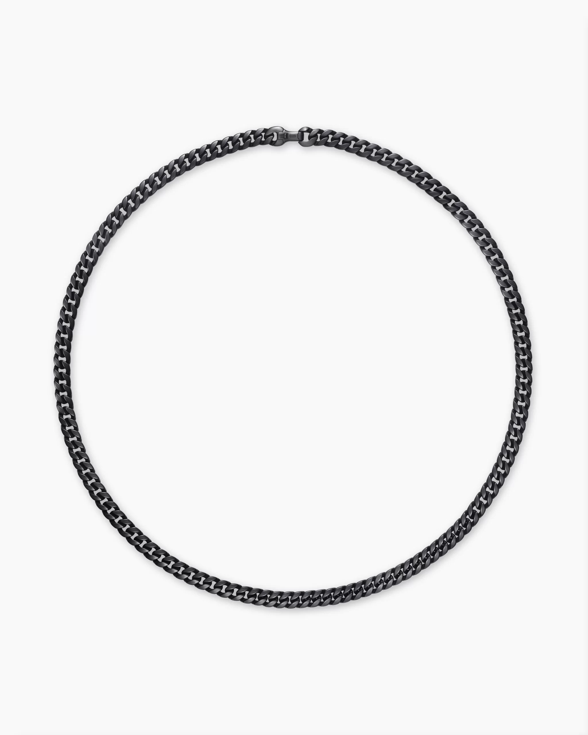 Inspired by David’s passion for horses, Curb Chain is the most elevated expression of our signature chain links. Its timeless elegance is rooted in the traditional equestrian bridle tack used to create control and stability during moments of speed. Forged precious metal is carved into Cable-like S-curves, each link crafted with impactful precision and hand-assembled with the next, culminating in a striking chain engineered for effortless movement.Black titaniumNecklace, 8mmPush claspThis item can be resized. Please contact customer care for more information.