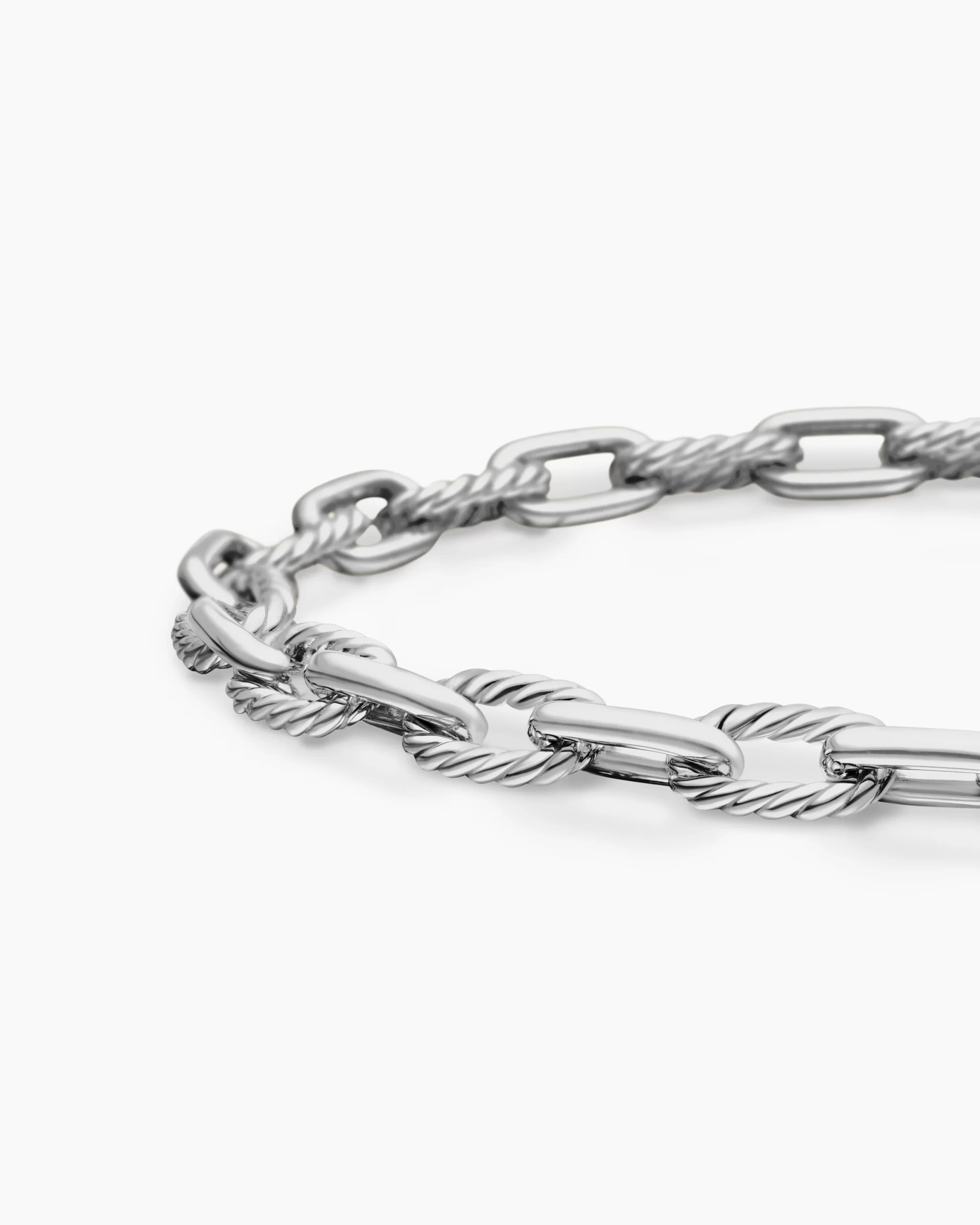 Named for the iconic Manhattan avenue, DY Madison® captures the bold spirit of New York City—unexpected moments and the promise of success. A striking juxtaposition of smooth and Cabled, pillow-shaped links fuses the brand’s signature design elements to create a unique rhythm. At once modern and timeless, these must-have chains are instant heirlooms.Sterling silverBracelet, 6mmPush clasp