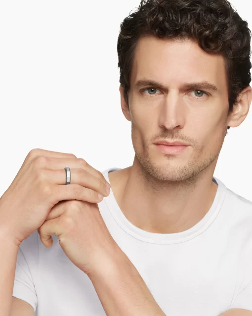 This distinctive men’s design is inspired by modern architecture. Grey titaniumRing, 6mmThis item can be engraved. Please contact customer care for more information.