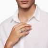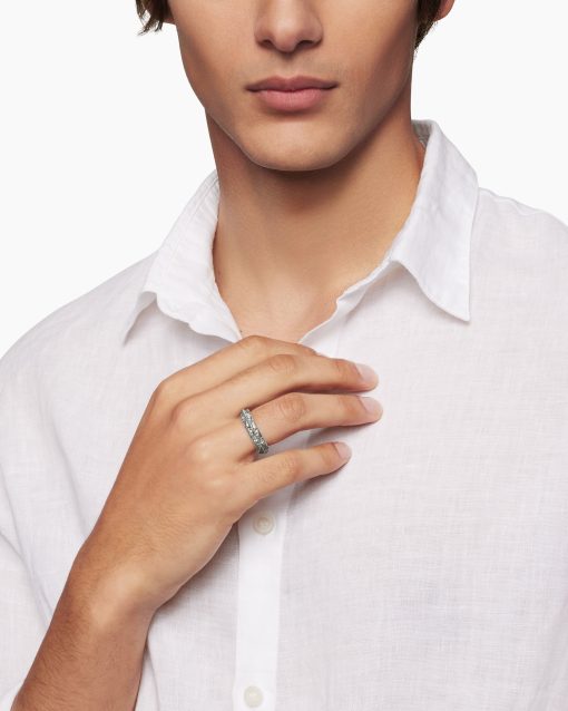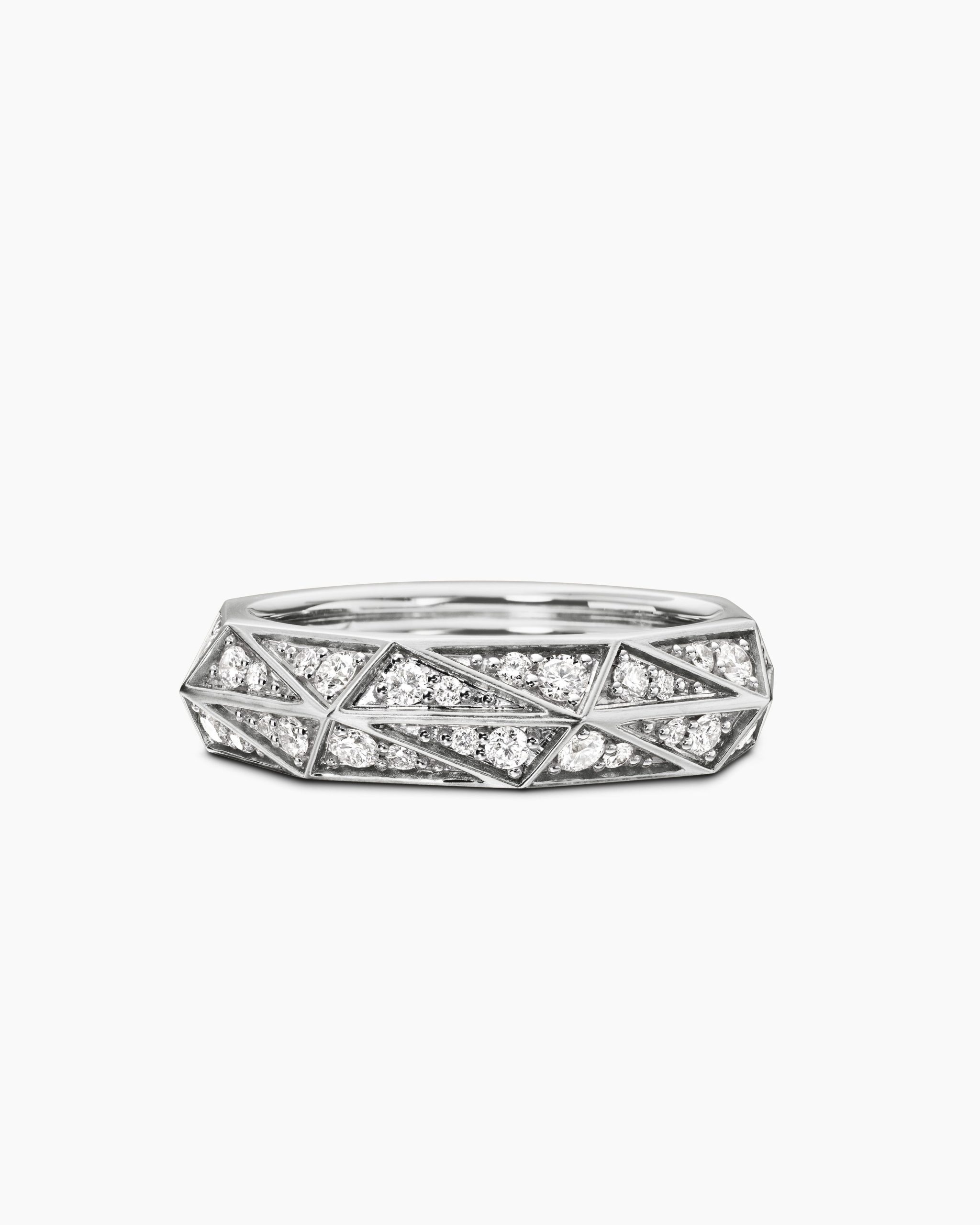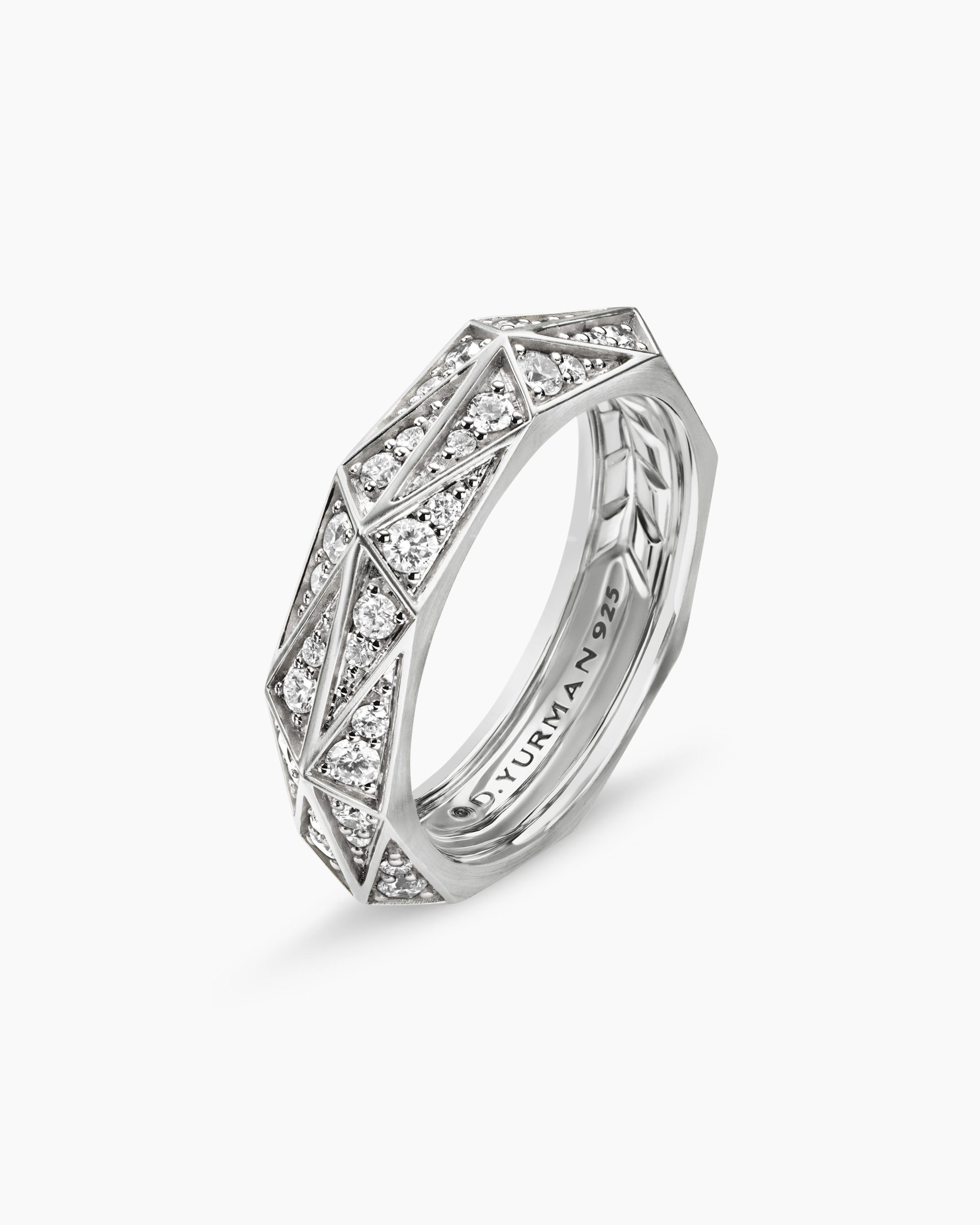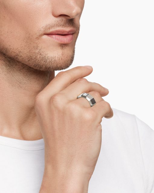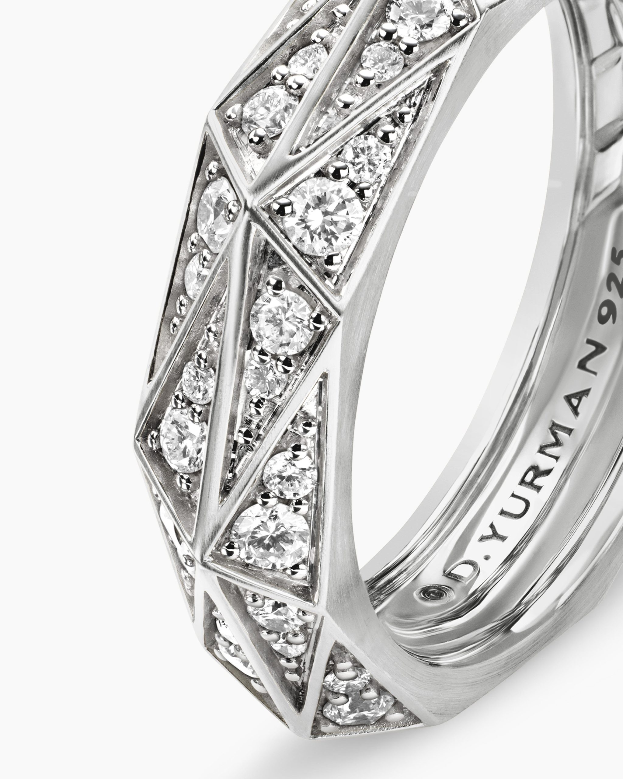 This distinctive men’s design is inspired by modern architecture. Sterling silverPavé-set diamonds, 1.18 total carat weightRing, 6.2mm