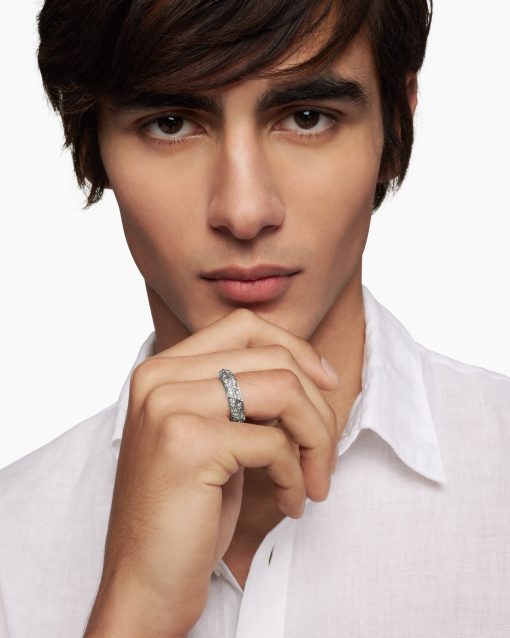 This distinctive men’s design is inspired by modern architecture. 18-karat white goldBaguette diamond, 0.45 total carat weightRing, 10mmThis item can be engraved. Please contact customer care for more information.
