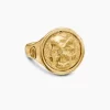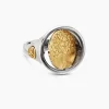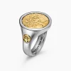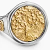 Opposing forces create harmony and balance. Duality explores the nature of opposites through symbolism: hand-carved medallions flip from one side to the other, revealing contrary elemental forces. Sterling silver with 18-karat yellow goldRing, 20mmThis ring is interchangeable and can be worn 2 different ways. Coin can rotate so ring can be worn with either side of the coin facing up.