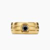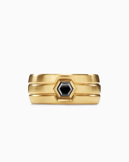 Drawing on six-sided patterns in nature, this collection applies the hexagon’s geometric efficiency to innovative jewelry designs. Each creation blends rubber and precious metal through engineered, technologic precision. 18-karat yellow goldPavé-set black diamonds, 0.63 total carat weightRing, 10mmThis item can be resized. Please contact customer care for more information.This item can be engraved. Please contact customer care for more information.