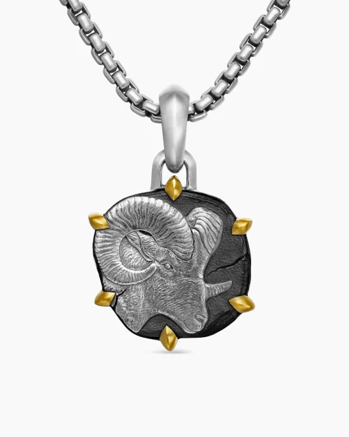 ARIESMarch 21–April 19 Symbol: RamAdventurous explorer Sterling silver with 18-karat yellow goldAmulet, 33 x 20mmPlease note: amulet only; chain sold separately.Shown with: Box Chain