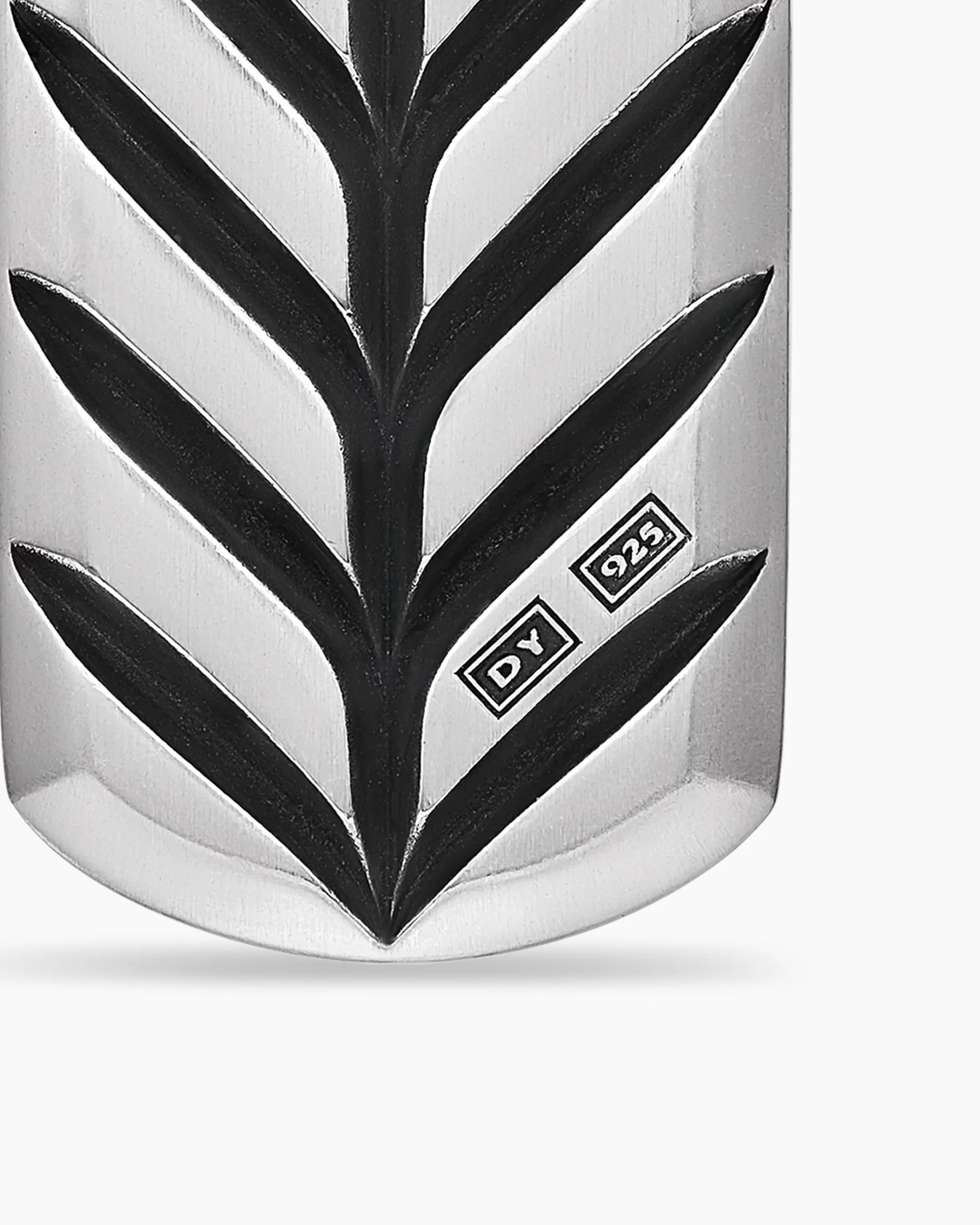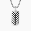 David Yurman skillfully reinterprets chevron—the ancient V-shaped pattern used in architecture and art—in this modern, sculptural collection. Viewed in relation to one another, each half of the motif is a mirror image of Cable. Sterling silverTag, 21 x 11.1mmPlease note: tag only; chain sold separately