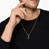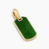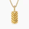 David Yurman skillfully reinterprets chevron—the ancient V-shaped pattern used in architecture and art—in this modern, sculptural collection. Viewed in relation to one another, each half of the motif is a mirror image of Cable. 18-karat yellow goldNephrite jadeTag, 21 x 11.1mmPlease note: tag only; chain sold separately