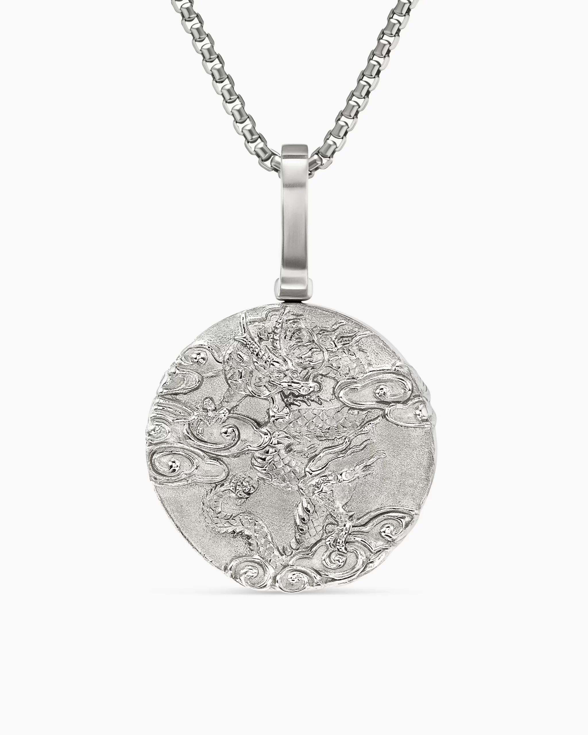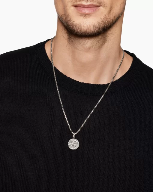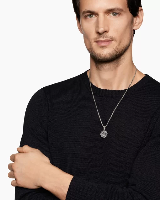 Once linked to spirituality and magic, today’s amulets are expressions of personal style. This collection reflects the modern man’s distinct identities with religious symbols, ancient charms and utilitarian motifs crafted from precious metals and gemstones. Sterling silverAmulet, 30.9 x 20mmPlease note: amulet only; chain sold separately