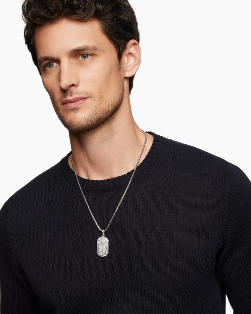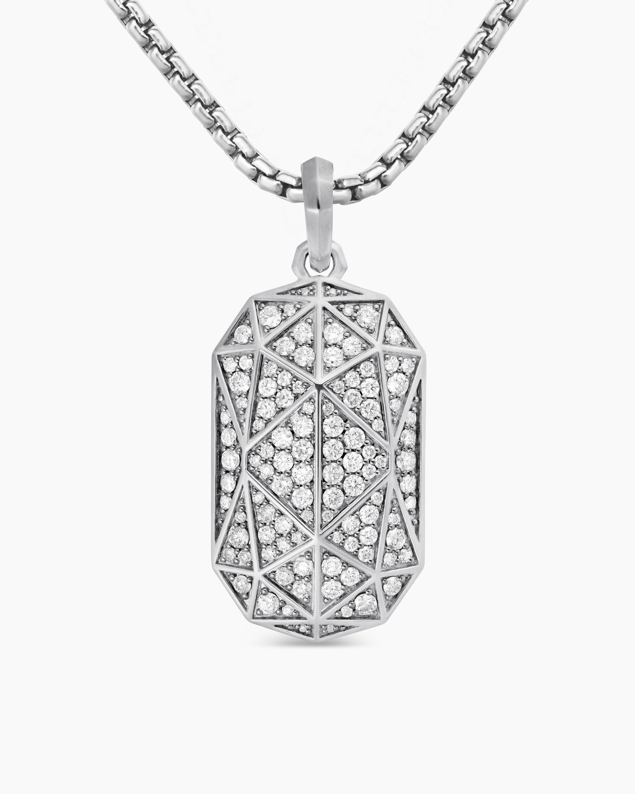 This distinctive men’s design is inspired by modern architecture. Sterling silverPavé diamonds, 2.16 total carat weightAmulet, 47.9 x 21.1mmPlease note: amulet only; chain sold separatelyShown with: Box ChainThis item can be engraved. Please contact customer care for more information.