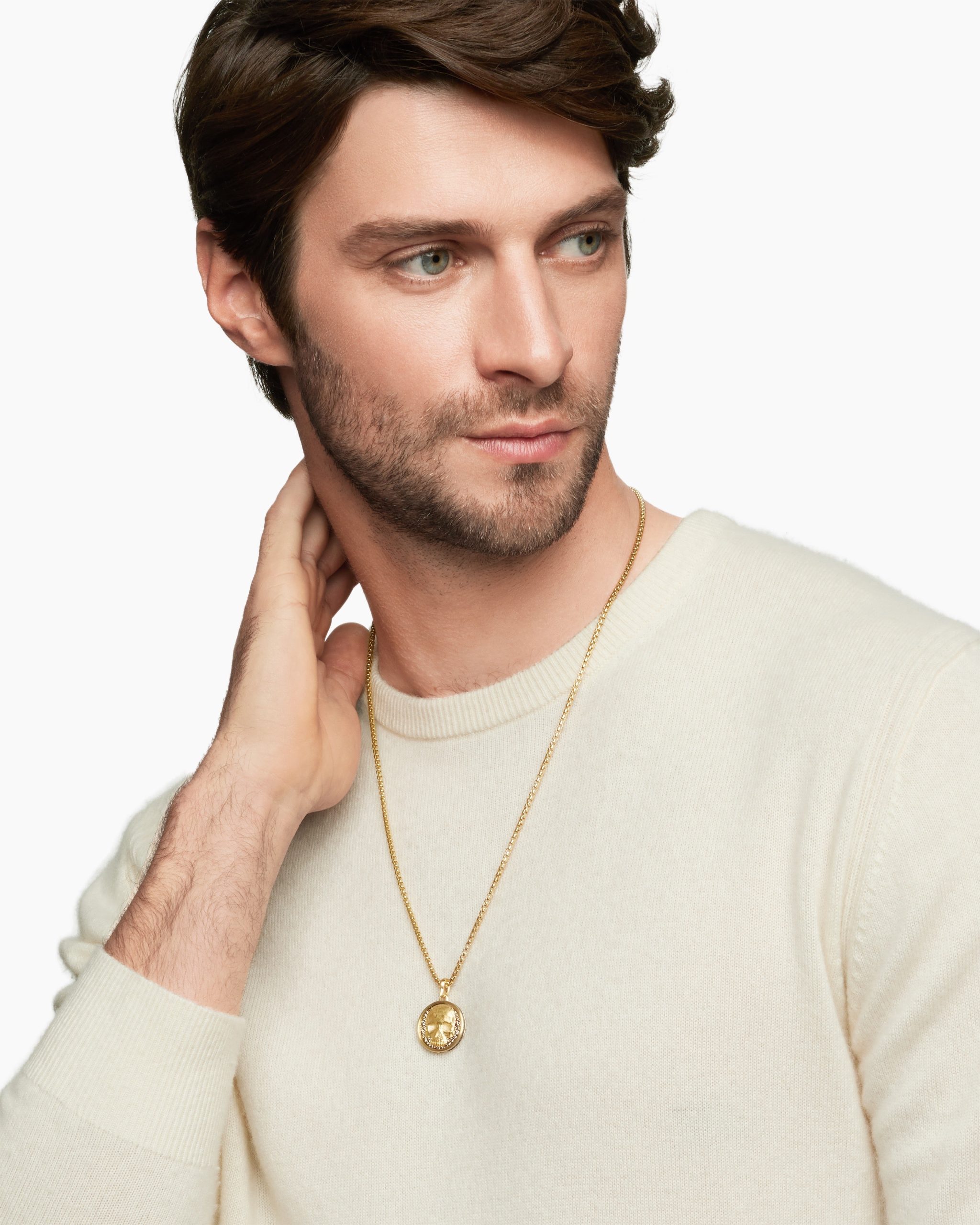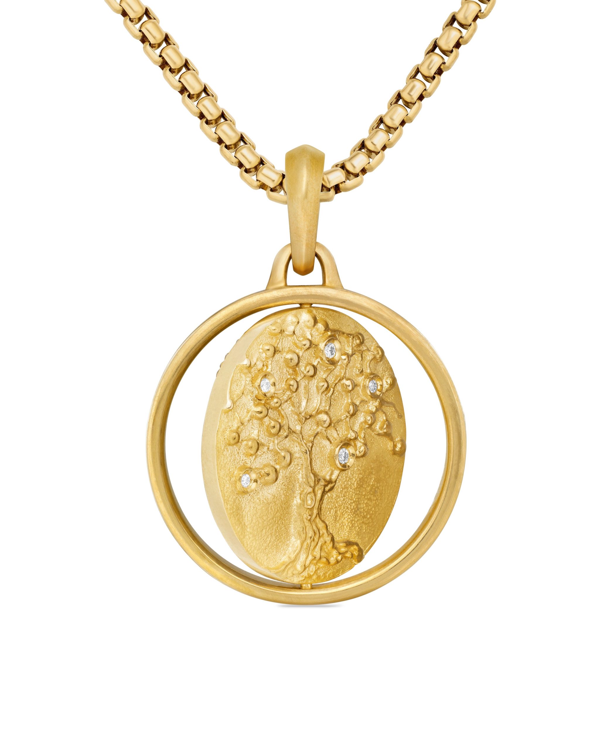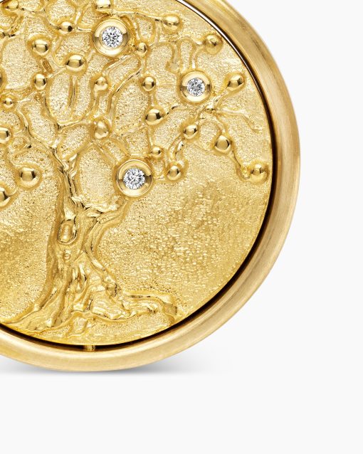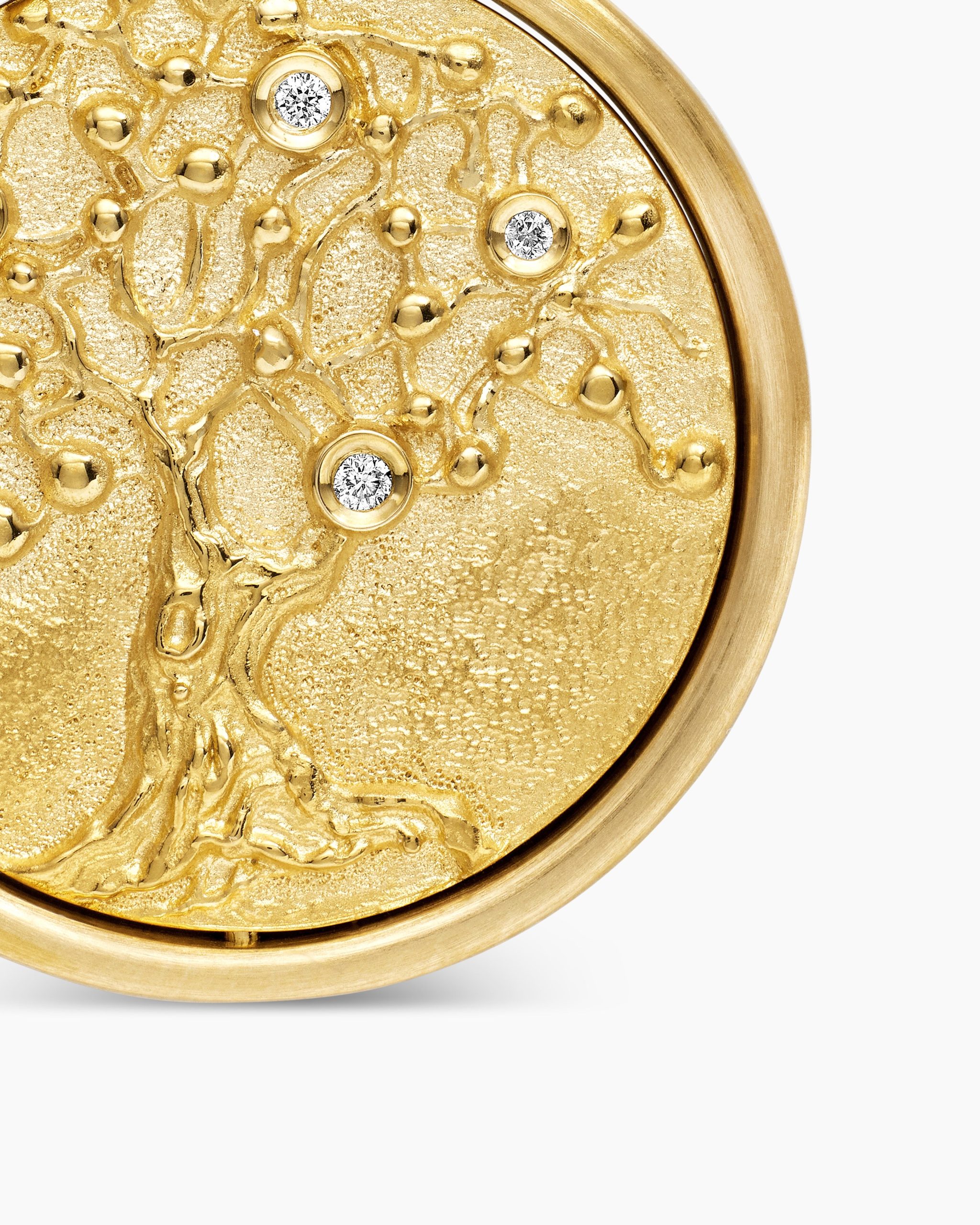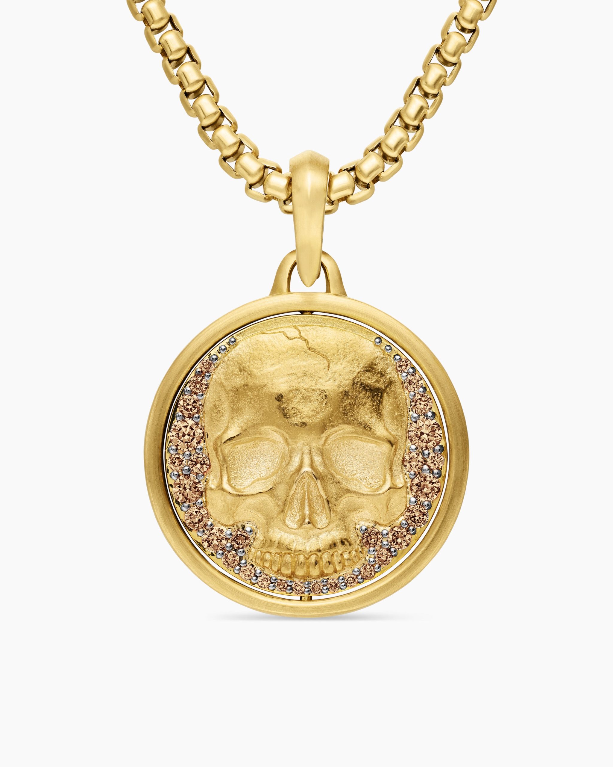 Opposing forces create harmony and balance. Duality explores the nature of opposites through symbolism: hand-carved medallions flip from one side to the other, revealing contrary elemental forces. 18-karat yellow goldCognac diamonds, 0.38 total carat weightBlack diamonds, 0.23 total carat weightDiamonds, 0.02 total carat weightAmulet, 30 x 21.8mmThis amulet is interchangeable and can be worn 2 different ways. Coin can rotate so amulet can be worn with either side of the coin facing up.Please note: amulet only; chain sold separatelyShown with: Box ChainFunctioning bail allows pendant to attach to a necklace or bracelet.