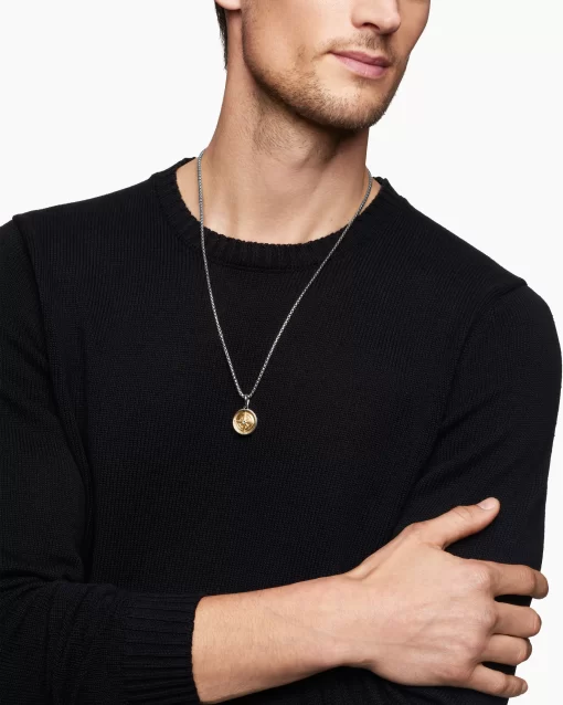 A tribute to the spirit of the sea, these designs reimagine the nautical equipment that has guided sailors for centuries as modern symbols of adventure. Sterling silver with 18-karat yellow goldDiamond, 0.07 total carat weightAmulet, 29.5 x 20mmPlease note: amulet only; chain sold separatelyShown with: Box ChainThis item can be engraved. Please contact customer care for more information.