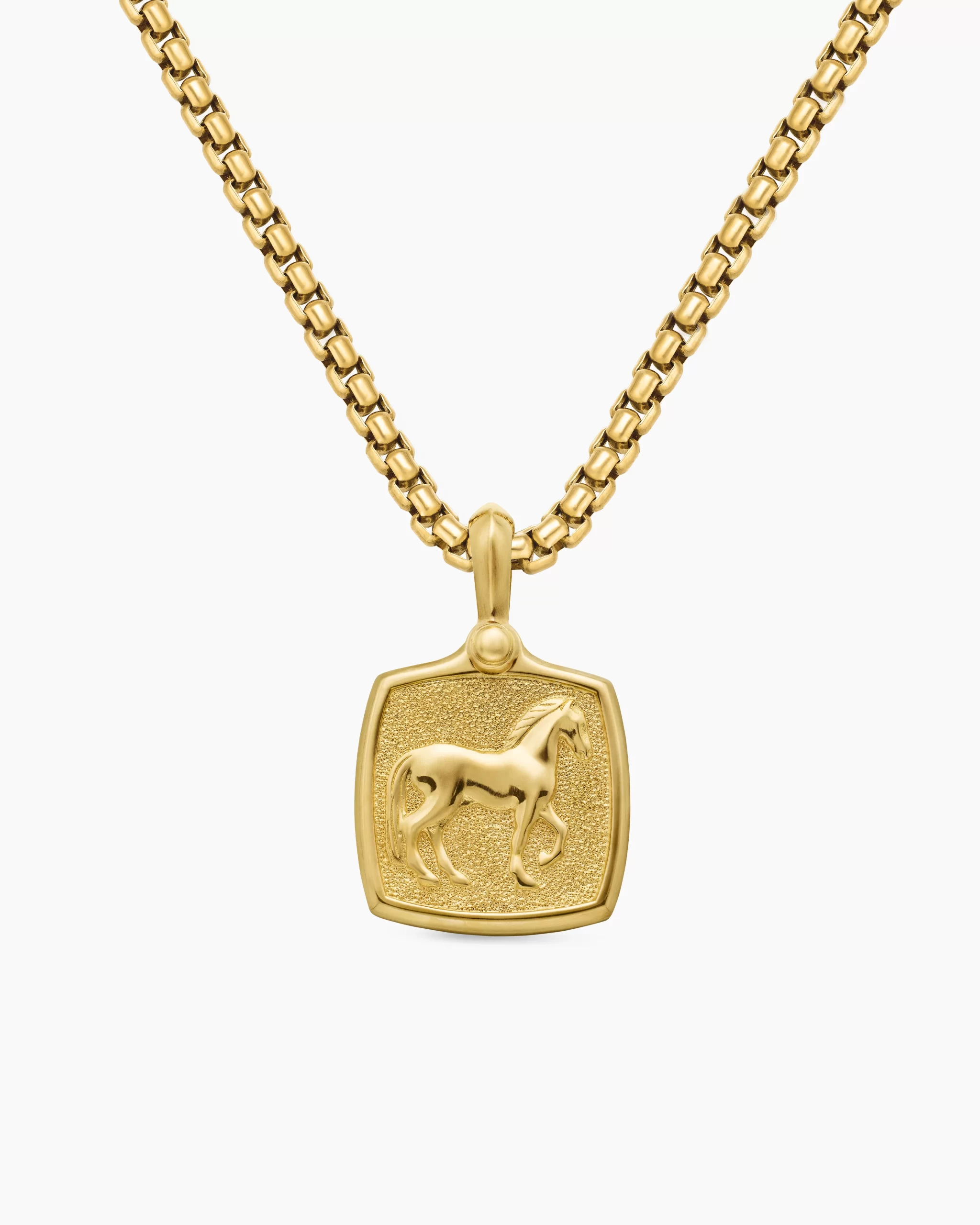 The past and present converge in Petrvs®, which is inspired by ancient coins and stone carvings. Many designs reflect classical intaglios with intricate motifs that express gentlemanly qualities. 18-karat yellow goldAmulet, 19 x 16.8mmPlease note: amulet only; chain sold separatelyShown with: Box Chain