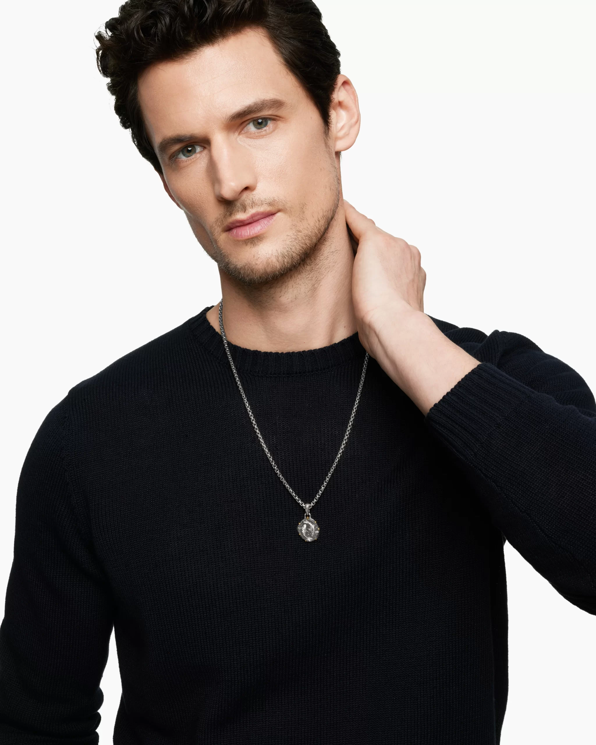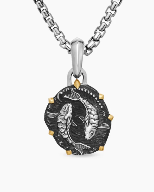 PISCESFebruary 19–March 20 Symbol: FishArtistic dreamer Sterling silver with 18-karat yellow goldAmulet, 33 x 20mmPlease note: amulet only; chain sold separately.Shown with: Box Chain