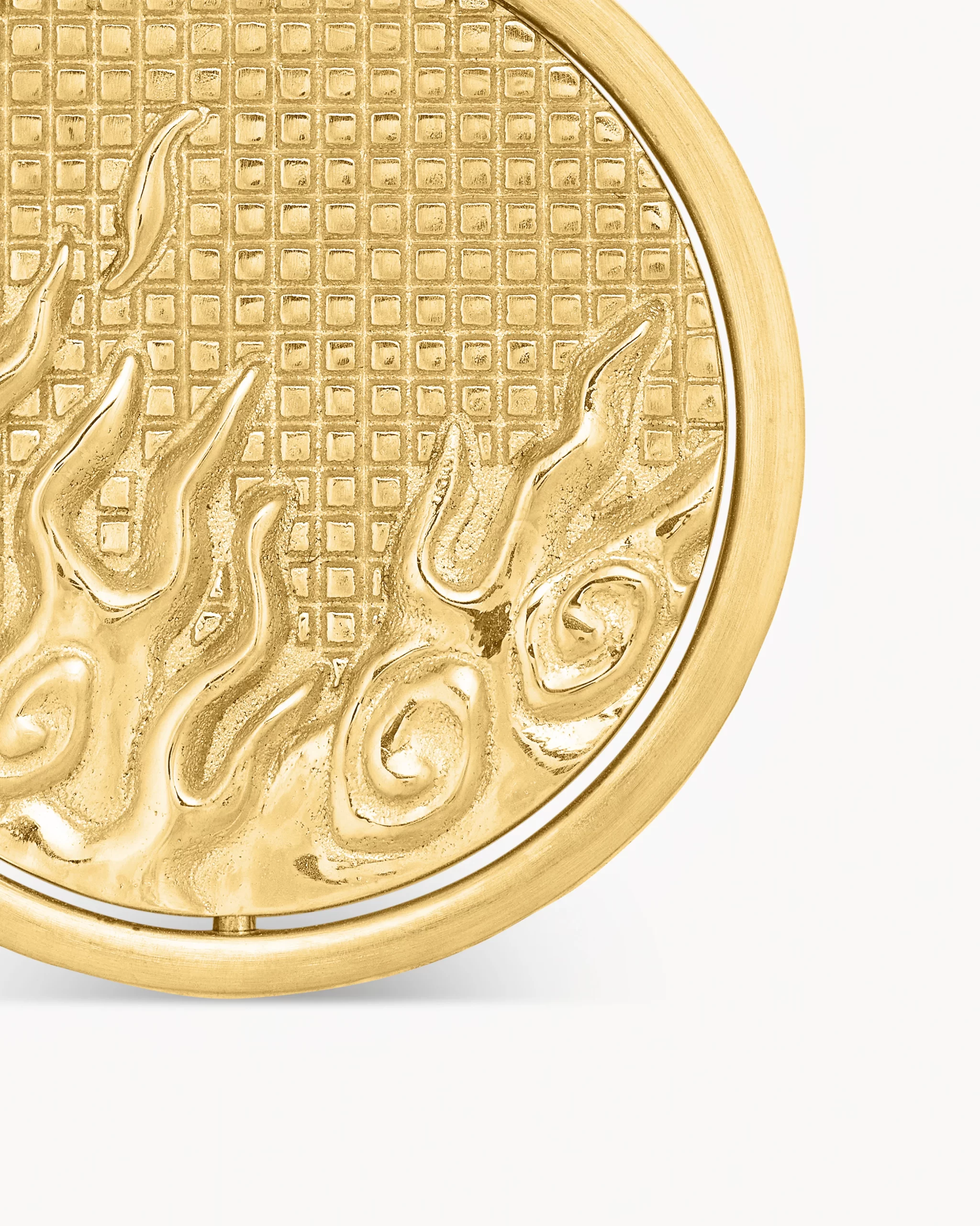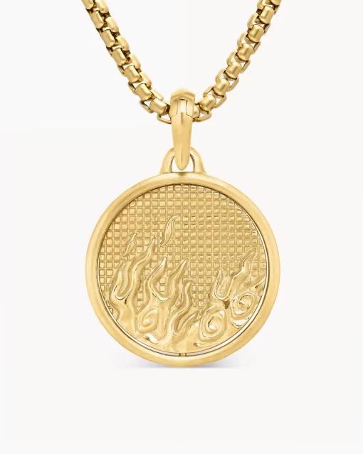 Opposing forces create harmony and balance. Duality explores the nature of opposites through symbolism: hand-carved medallions flip from one side to the other, revealing contrary elemental forces. 18-karat yellow goldAmulet, 30 x 21.8mmThis amulet is interchangeable and can be worn 2 different ways. Coin can rotate so amulet can be worn with either side of the coin facing up.Please note: amulet only; chain sold separatelyShown with: Box ChainFunctioning bail allows pendant to attach to a necklace or bracelet.