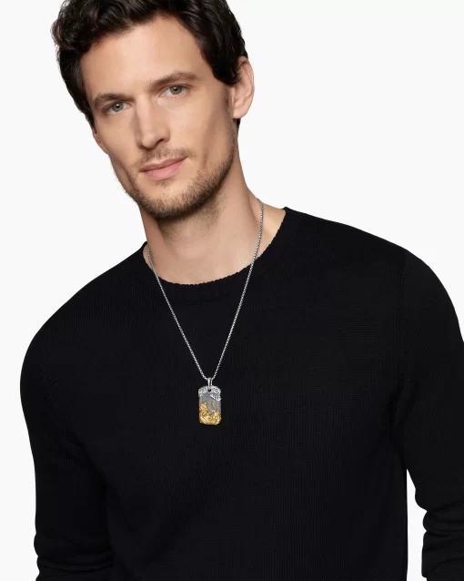 Inspired by Japanese wood-block prints and 18th-century samurai swords, David Yurman translates the beauty of ocean waves into wearable art. Sterling silver with 18-karat yellow goldTag, 42 x 25.6mmTotal length, 50.8mmPlease note: tag only; chain sold separately