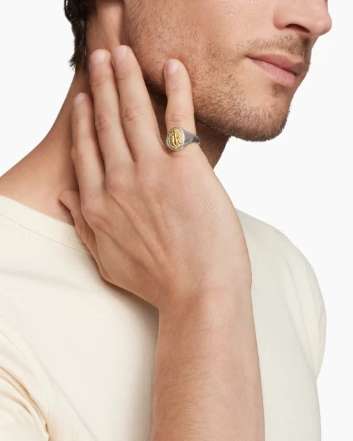 The past and present converge in Petrvs®, which is inspired by ancient coins and stone carvings. Many designs reflect classical intaglios with intricate motifs that express gentlemanly qualities. Sterling silver with 18-karat yellow goldRing, 15.5mm This item can be resized. Please contact customer care for more information.This item can be engraved. Please contact customer care for more information.