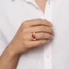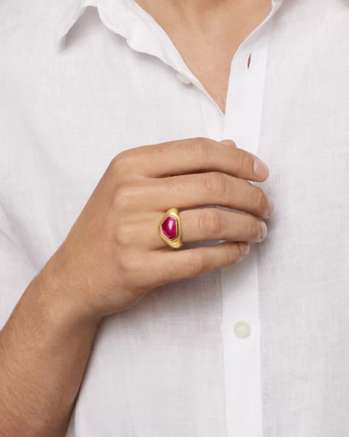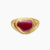 Inspired by artifacts and coins discovered in a sunken pirate ship off of Cape Cod, these designs evoke treasure time-washed by the sea. Artisanal techniques mirror the natural erosion and patinas that occur underwater. 18-karat yellow goldRuby, 6.55 total carat weightRing, 14.5mmThis item can be sized down. Please contact customer care for more information.