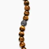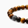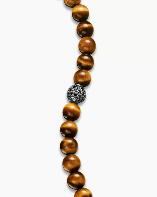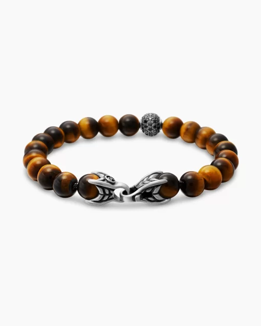 Rooted in spiritual significance, these modern beaded jewelry designs are symbolic of your inner spirit and authenticity. They are meant to be collected, layered, and worn continuously as you move through life’s journey. Expertly crafted, they feature a variety of smoothly polished, semi-precious, and rare gemstones, such as quartz, black onyx and tiger’s eye.Sterling silverTiger’s eyePavé-set black diamonds, 0.62 total carat weightBracelet, 8mmLobster claspSize 8.5in fits wrists up to 8in