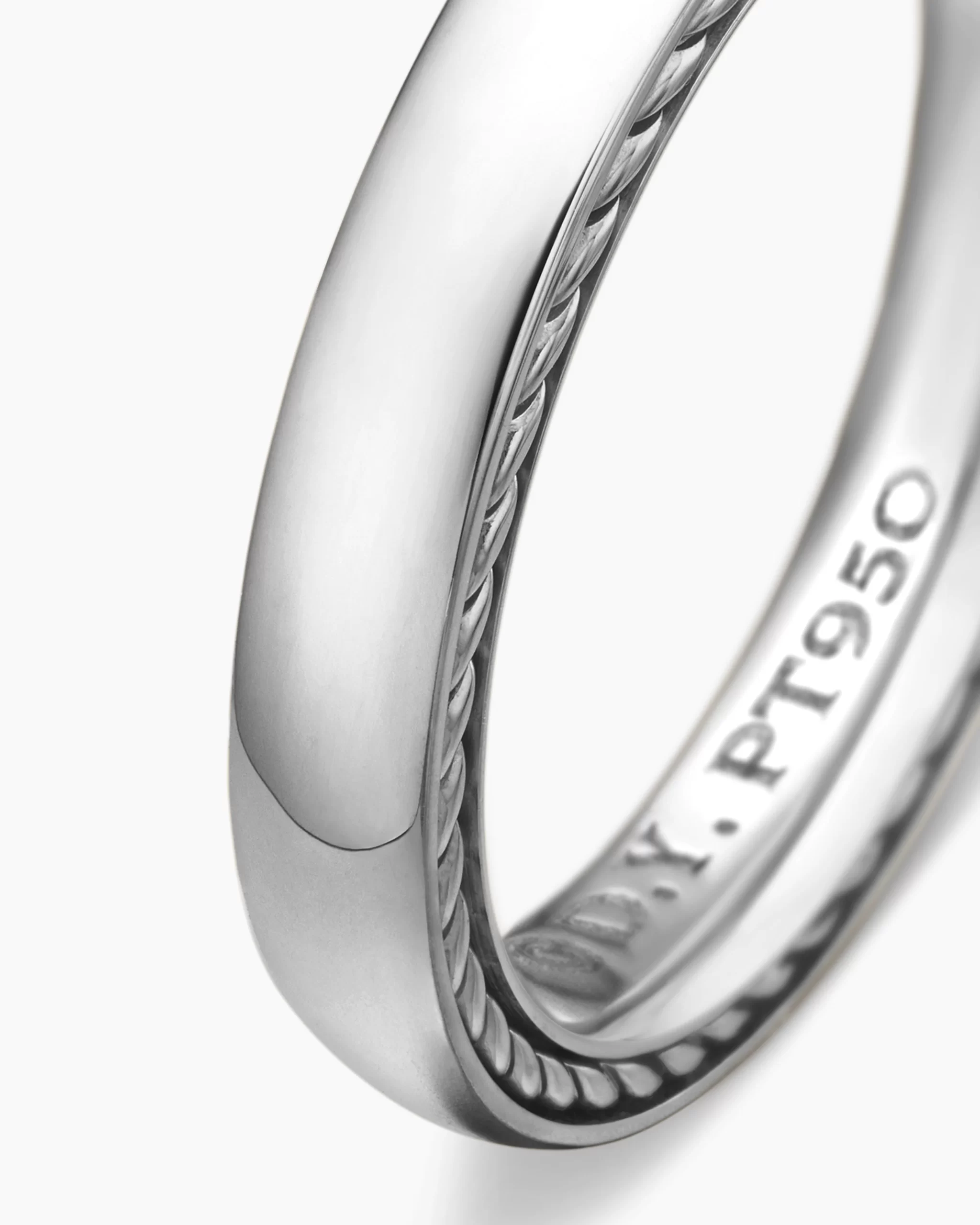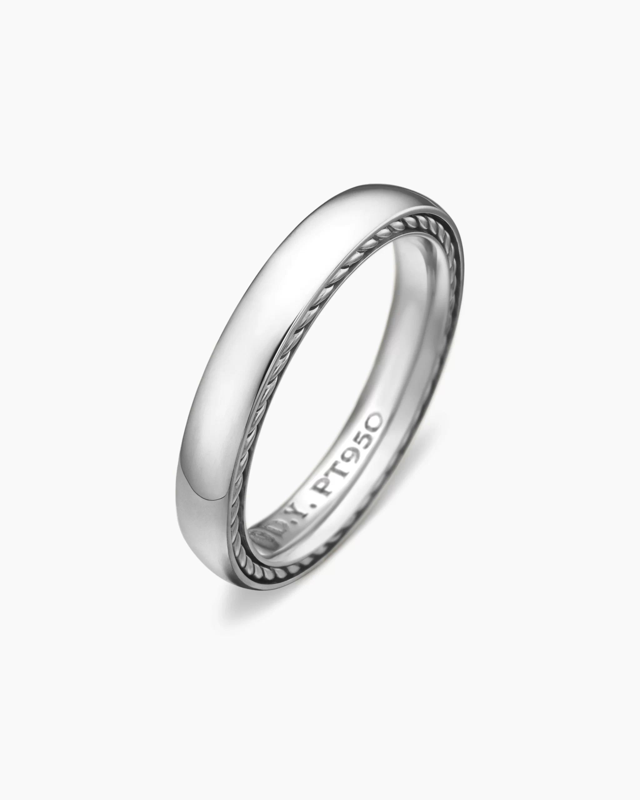 Inspired by clean lines and smooth metal surfaces, these minimalist designs are sculpted with engineered precision. PlatinumRing, 4mmThis item can be sized down. Please contact customer care for more information.This item can be engraved. Please contact customer care for more information.