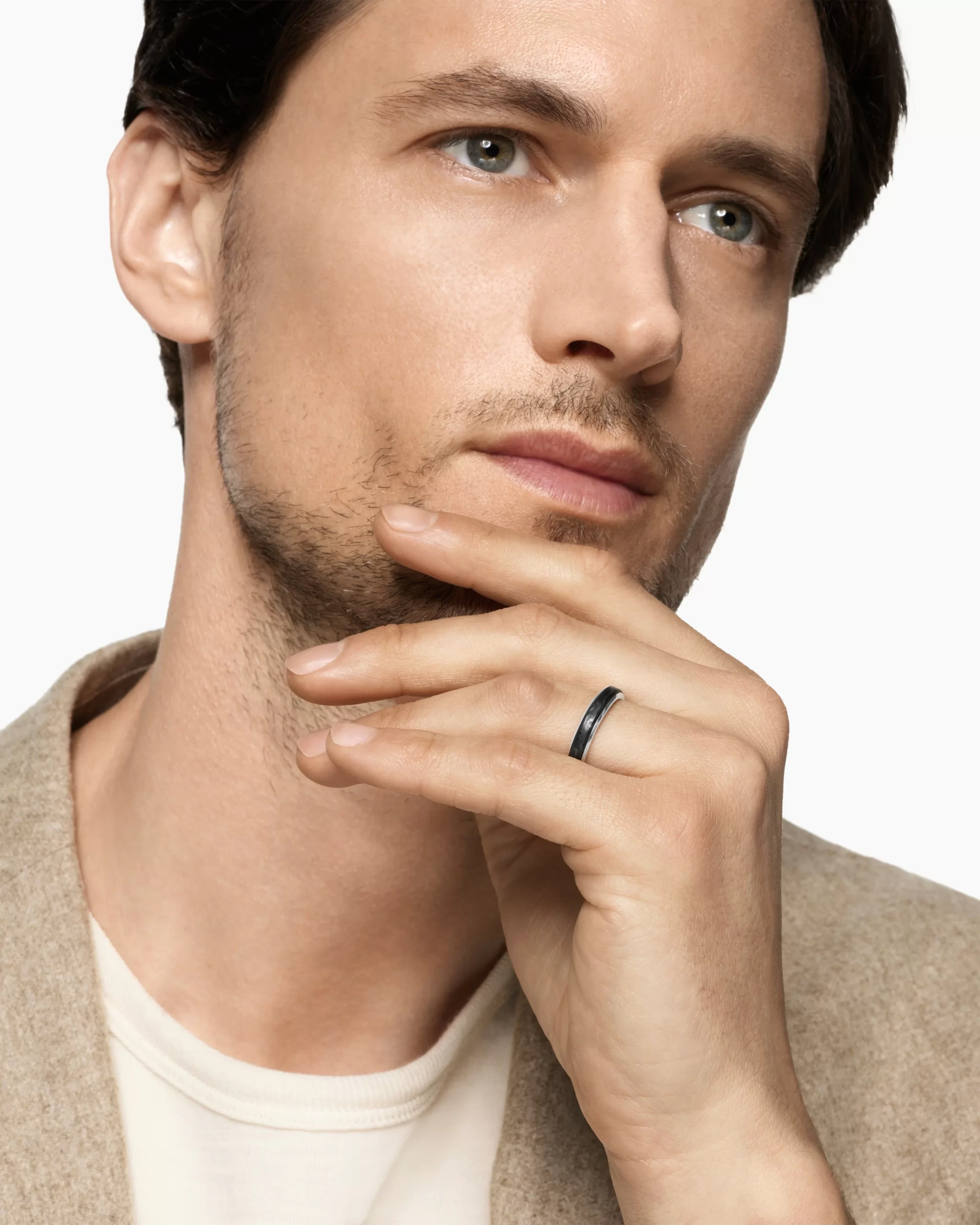 Inspired by clean lines and smooth metal surfaces, these minimalist designs are sculpted with engineered precision.Forged carbon is a lightweight yet strong composite originally used in aeronautics and sports cars. For jewelry, David Yurman pioneered a technique which fuses the modern material and precious metal into innovative, graphic designs.18-karat white goldForged carbonRing, 4mmThis item can be engraved. Please contact customer care for more information.