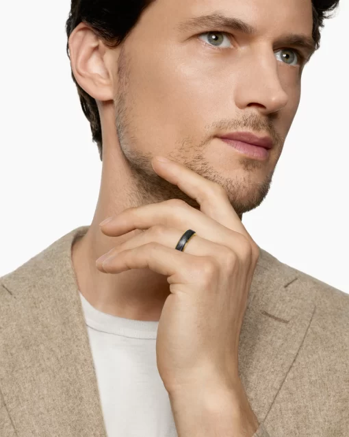 Inspired by clean lines and smooth metal surfaces, these minimalist designs are sculpted with engineered precision.Forged carbon is a lightweight yet strong composite originally used in aeronautics and sports cars. For jewelry, David Yurman pioneered a technique which fuses the modern material and precious metal into innovative, graphic designs.Inspired by clean lines and smooth metal surfaces, these minimalist designs are sculpted with engineered precision.18-karat yellow goldForged carbonRing, 6mmThis item can be engraved. Please contact customer care for more information.