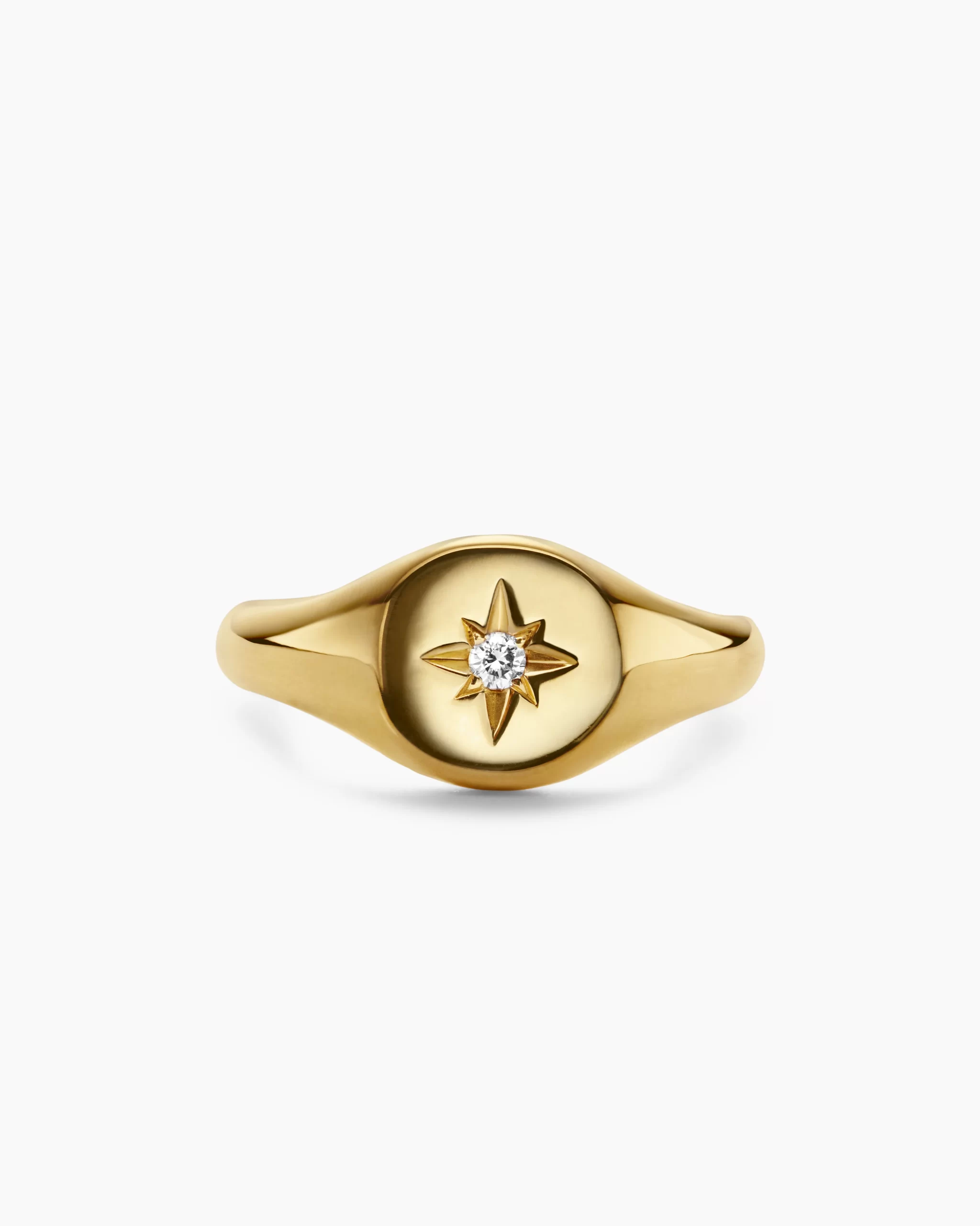 Inspired by the traditional signet ring, the Pinky Ring Collection brings a modern spirit to a classic form with elegant contours. 18-karat yellow goldDiamond, 0.02 total carat weightRing, 7mmThis item can be resized. Please contact customer care for more information.