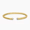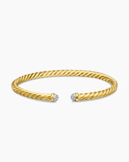 David Yurman’s artistic signature, Cable began as a bracelet that he hand-twisted from 50 feet of wire. For the past 30 years, he has evolved the twisted helix into a myriad of designs. Cablespira® unites artistry and innovation with our exclusive, highly flexible. construction. 18-karat yellow goldPavé diamonds, 0.19 total carat weightBracelet, 4mmCablespira® is a patented DY construction that is highly flexible and exceptionally comfortable to wear.