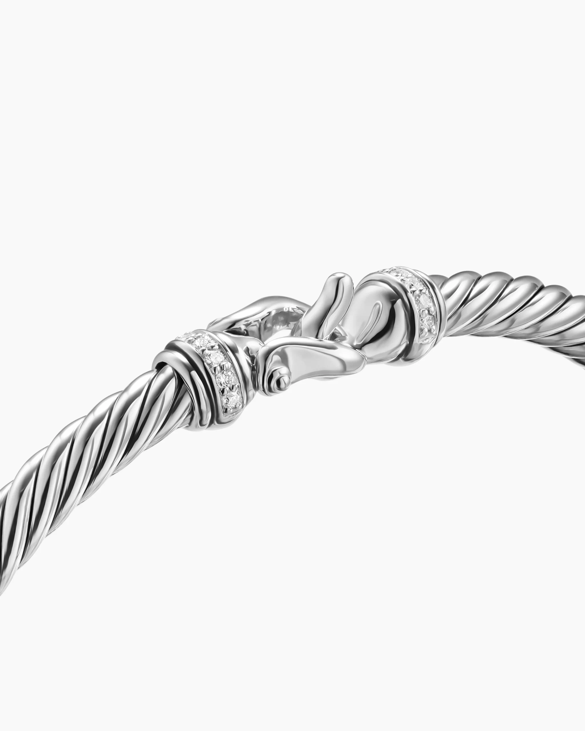 Cable, David Yurman’s artistic signature, began with a bracelet hand-twisted from 50 feet of wire. This timeless design is inspired by David’s love of all things equestrian.Sterling silverPavé-set diamonds, 0.09 total carat weightBracelet, 4mmNitinol core to provide flex movement.