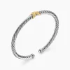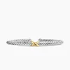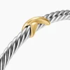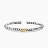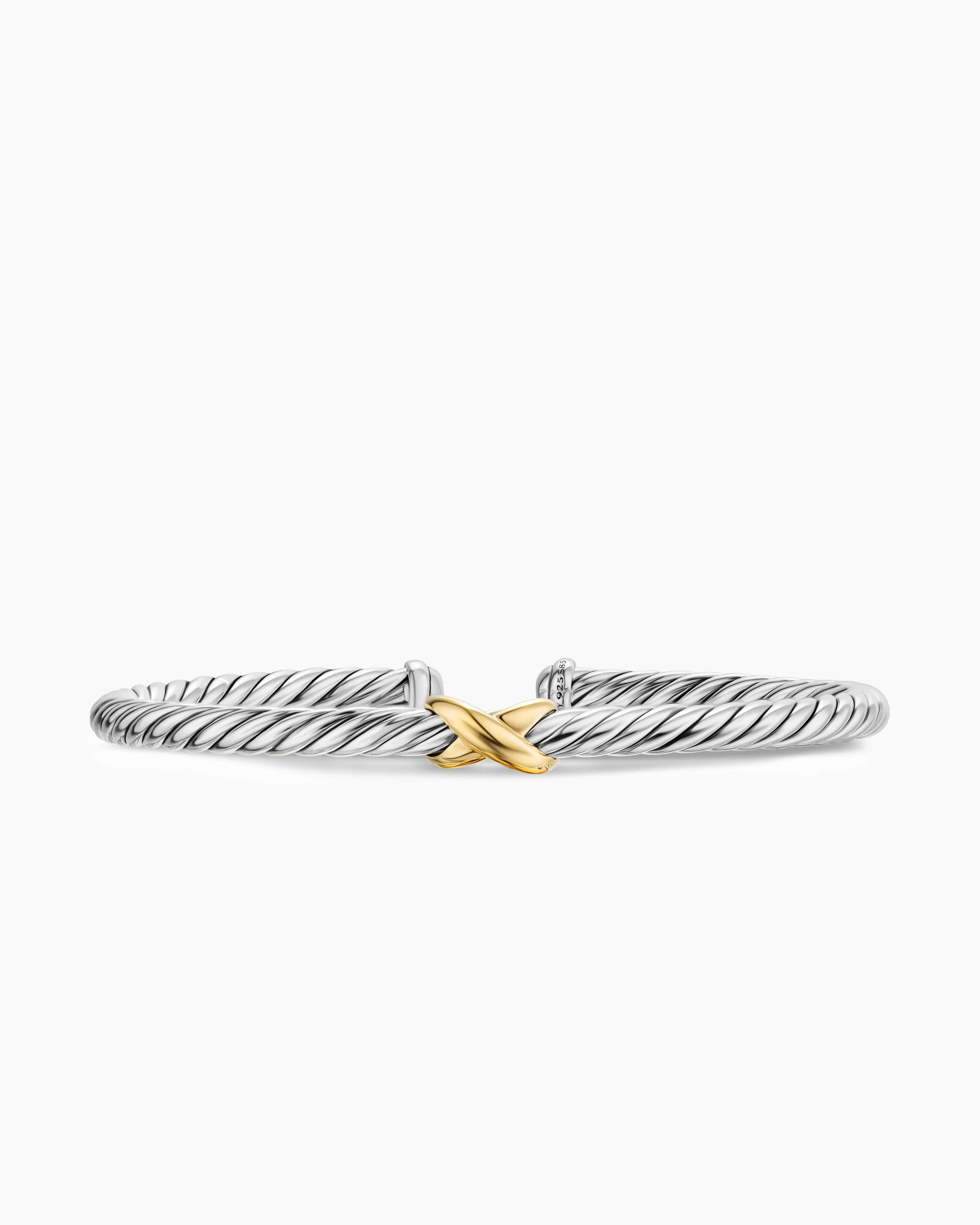 One of David Yurman’s most iconic designs, the X Collection was inspired by his wife Sybil’s painting of the ancient mark. Classic yet contemporary, the collection epitomizes his approach to design.Sterling silver and 14-karat bonded yellow goldBracelet, 4mmNitinol core to provide flex movement.