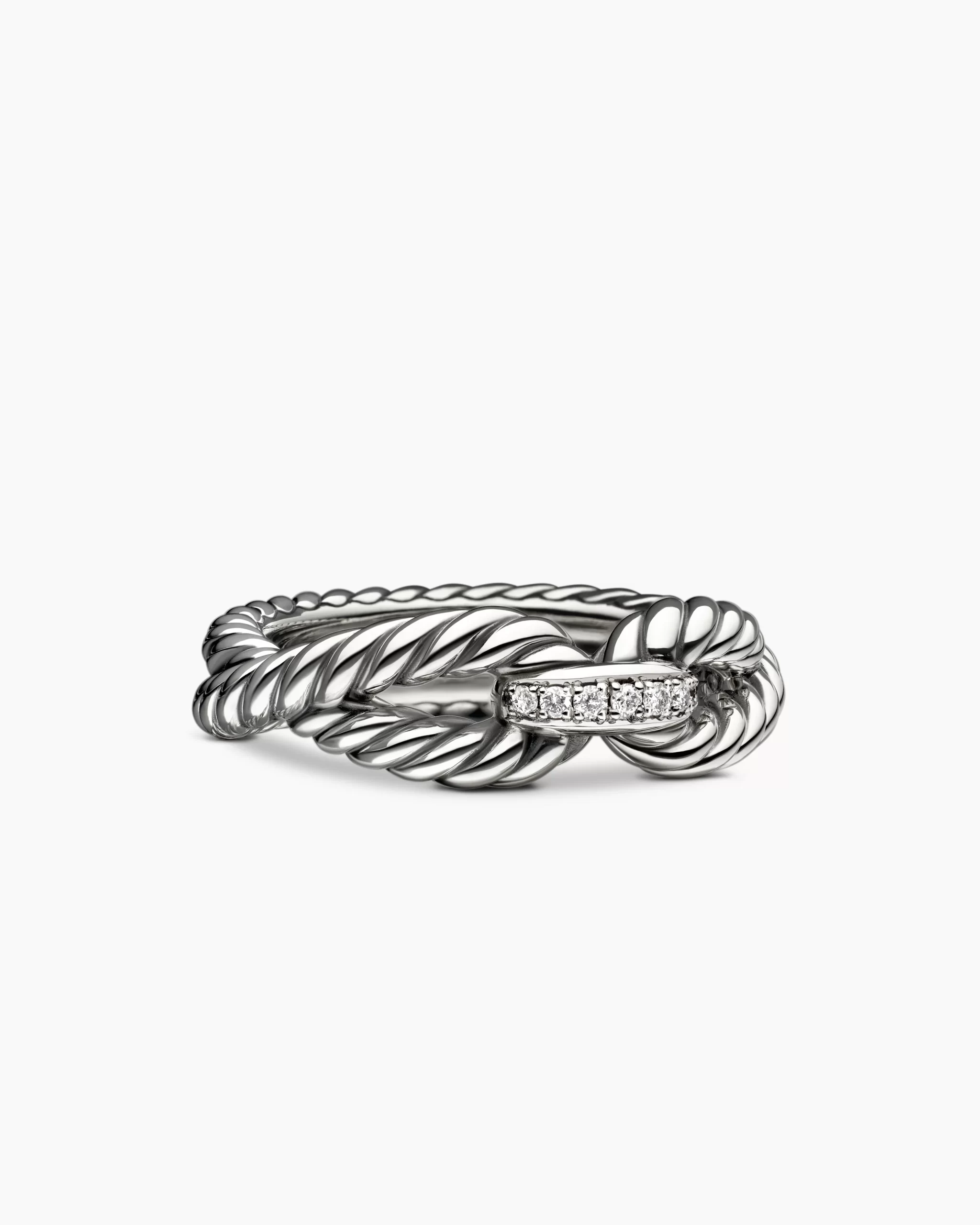 Our signature design, transformed into sculptural twists connected by a single loop. Sterling silverPavé diamonds, 0.05 total carat weightRing, 8mmThis item can be engraved. Please contact customer care for more information.