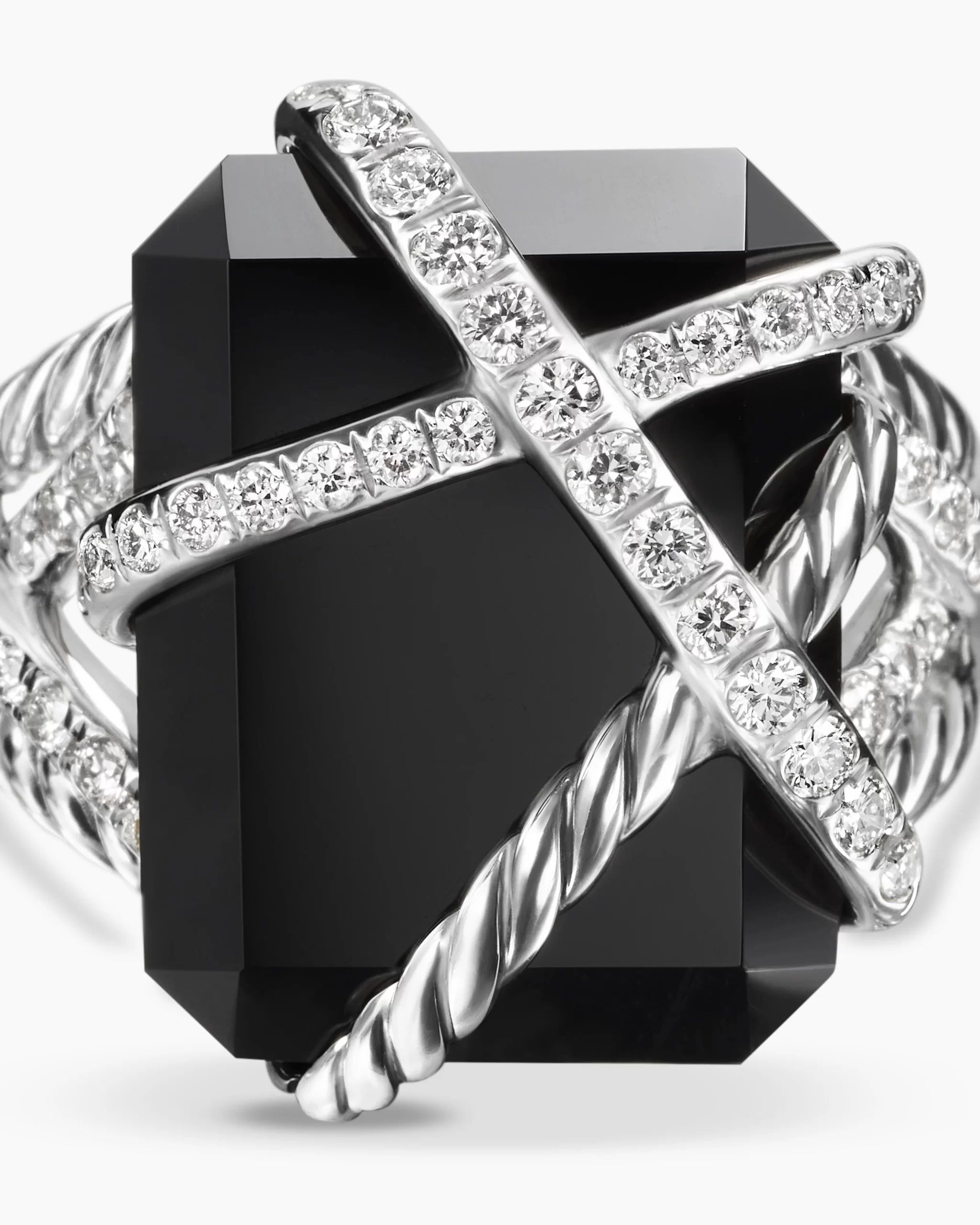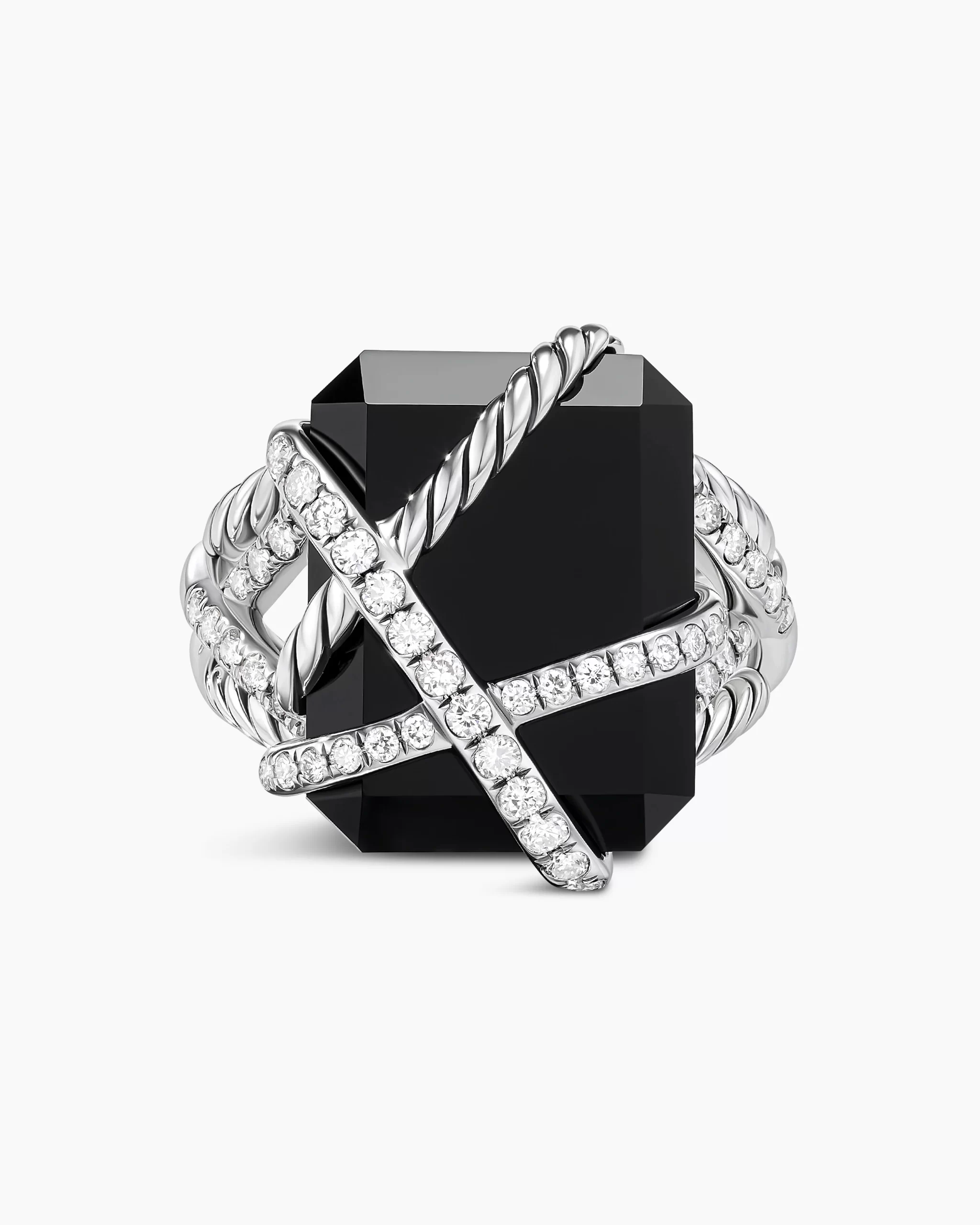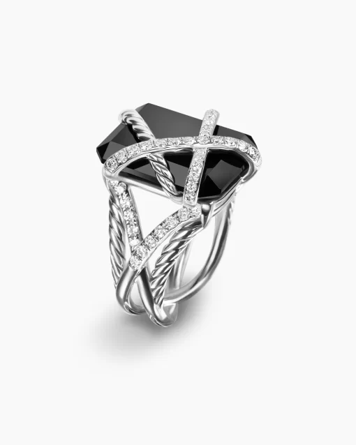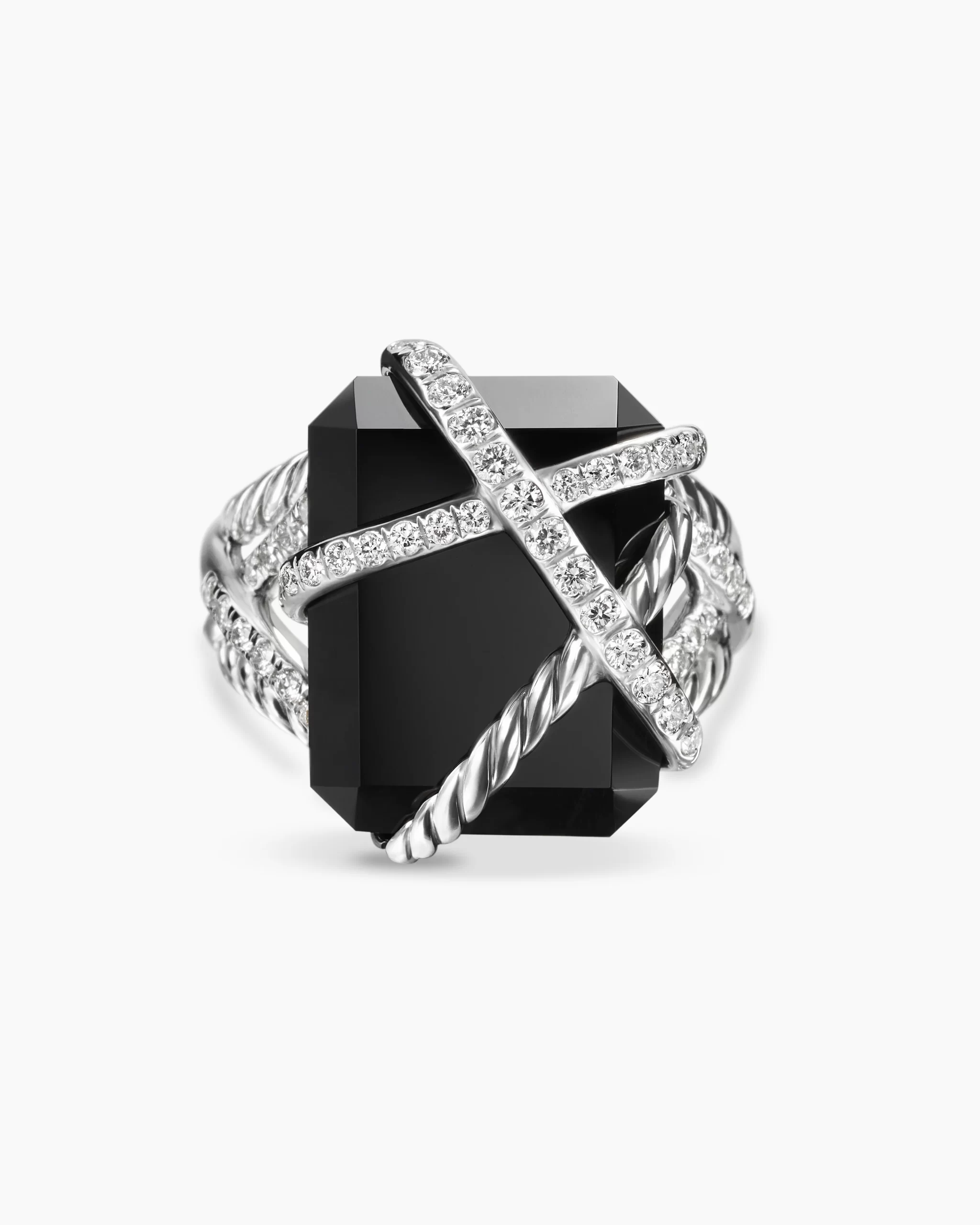 The Cable Wrap Collection redefines how a gemstone is set. Instead of using prongs or a bezel to hold the stone in place, it is elegantly wrapped with strands of Cable and diamonds. Sterling silverBlack onyxPavé-set diamonds, 0.60 total carat weightRing, 14mmThis item can be resized. Please contact customer care for more information.This item can be engraved. Please contact customer care for more information.