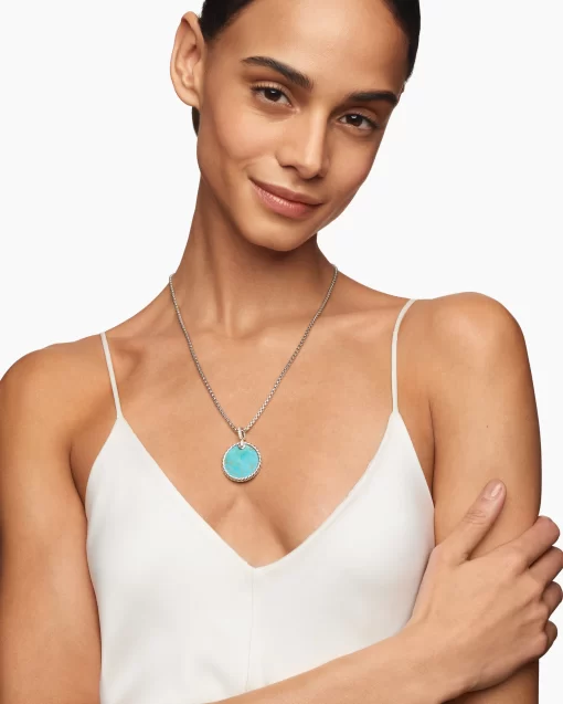 David Yurman Women’s Charms & Amulets Dy Elements® Reversible Disc Pendant | Matrix_kingman_tq_wht_agate_mop