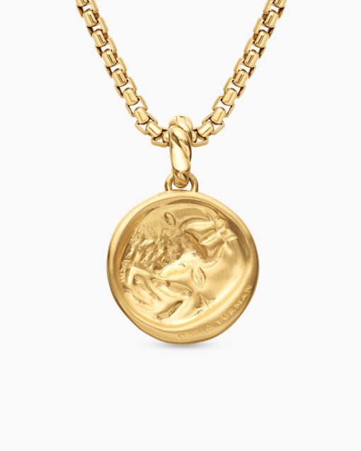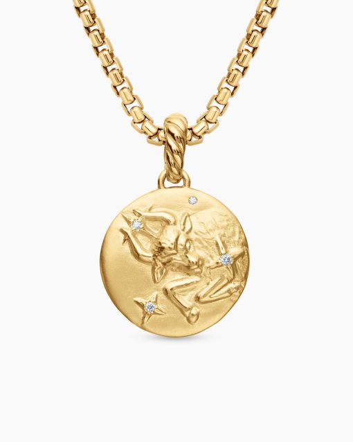 TAURUS April 20–May 20Symbol: Bull Focused, resilient, sensual 18-karat yellow gold Diamonds, 0.03 total carat weightAmulet, 28.7 x 18.8mmFunctioning bail allows pendant to attach to a necklace or bracelet.Please note: amulet only; chain sold separately.Shown with: Box Chain