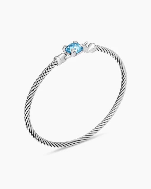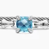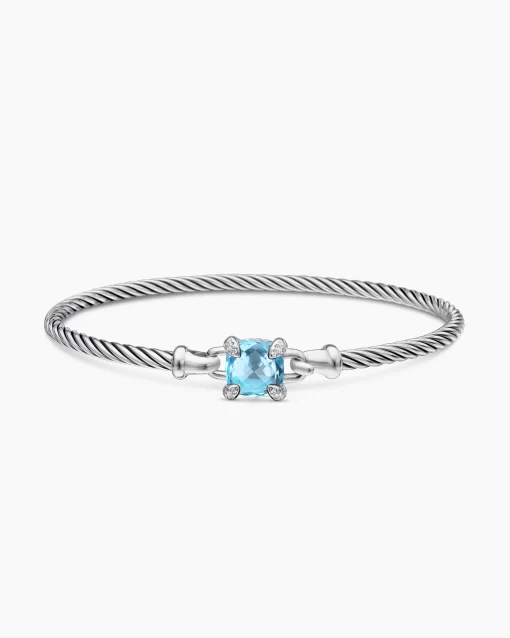 The Châtelaine® Collection is a perfect fusion of David and Sybil Yurman’s combined art—the marriage of a sculptor and a painter—form and color. Sterling silverBlue topaz, 2.50 total carat weightStone, 8mmPavé diamonds, 0.03 total carat weightBracelet, 3mmHook clasp