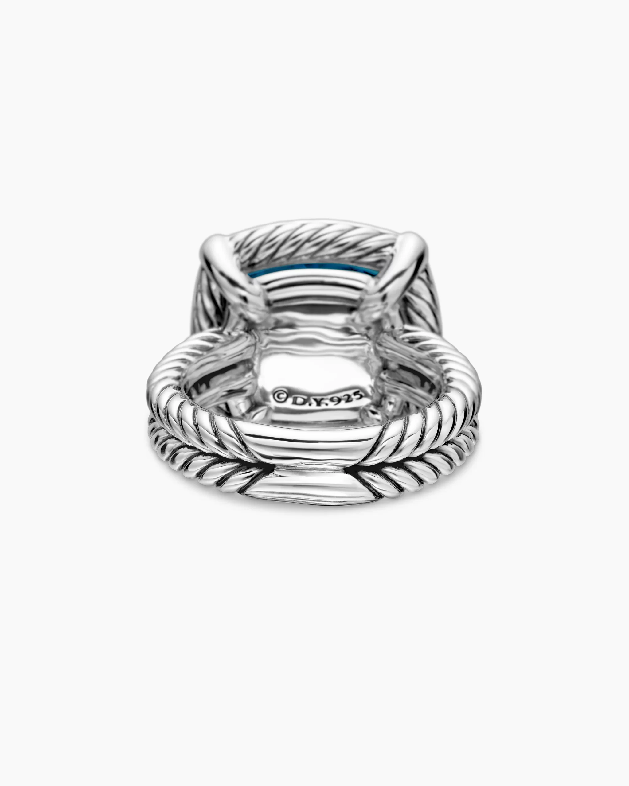 The Châtelaine® Collection is a perfect fusion of David and Sybil Yurman’s combined art—the marriage of a sculptor and a painter—form and color. Sterling silverHampton blue topaz, 12.80 total carat weightStone, 14mmPavé diamonds, 0.29 total carat weightRing, 18mm