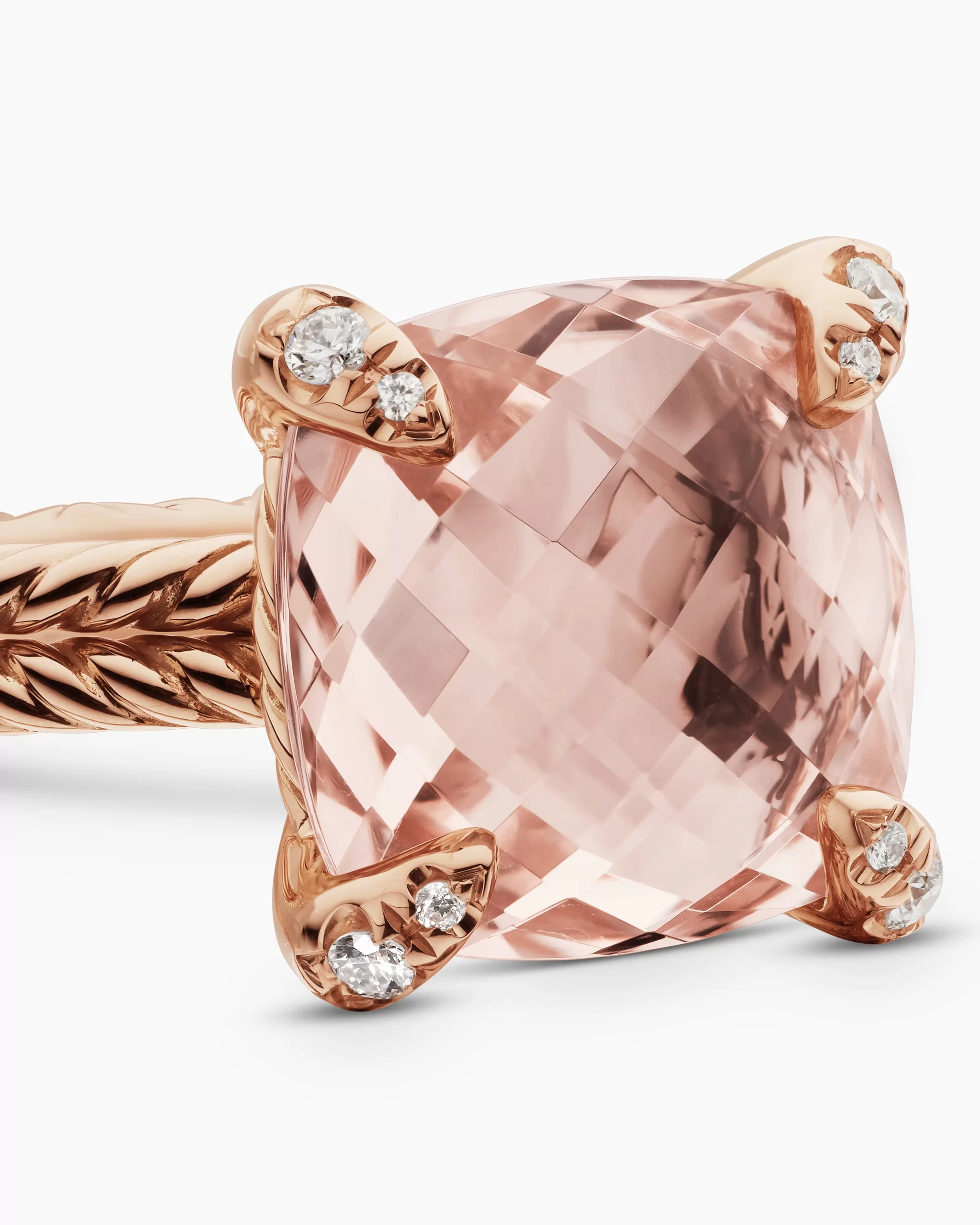 The Châtelaine® Collection is a perfect fusion of David and Sybil Yurman’s combined art—the marriage of a sculptor and a painter—form and color. 18-karat rose goldMorganite, 5.40 total carat weightPavé diamonds, 0.05 total carat weightRing, 11mm