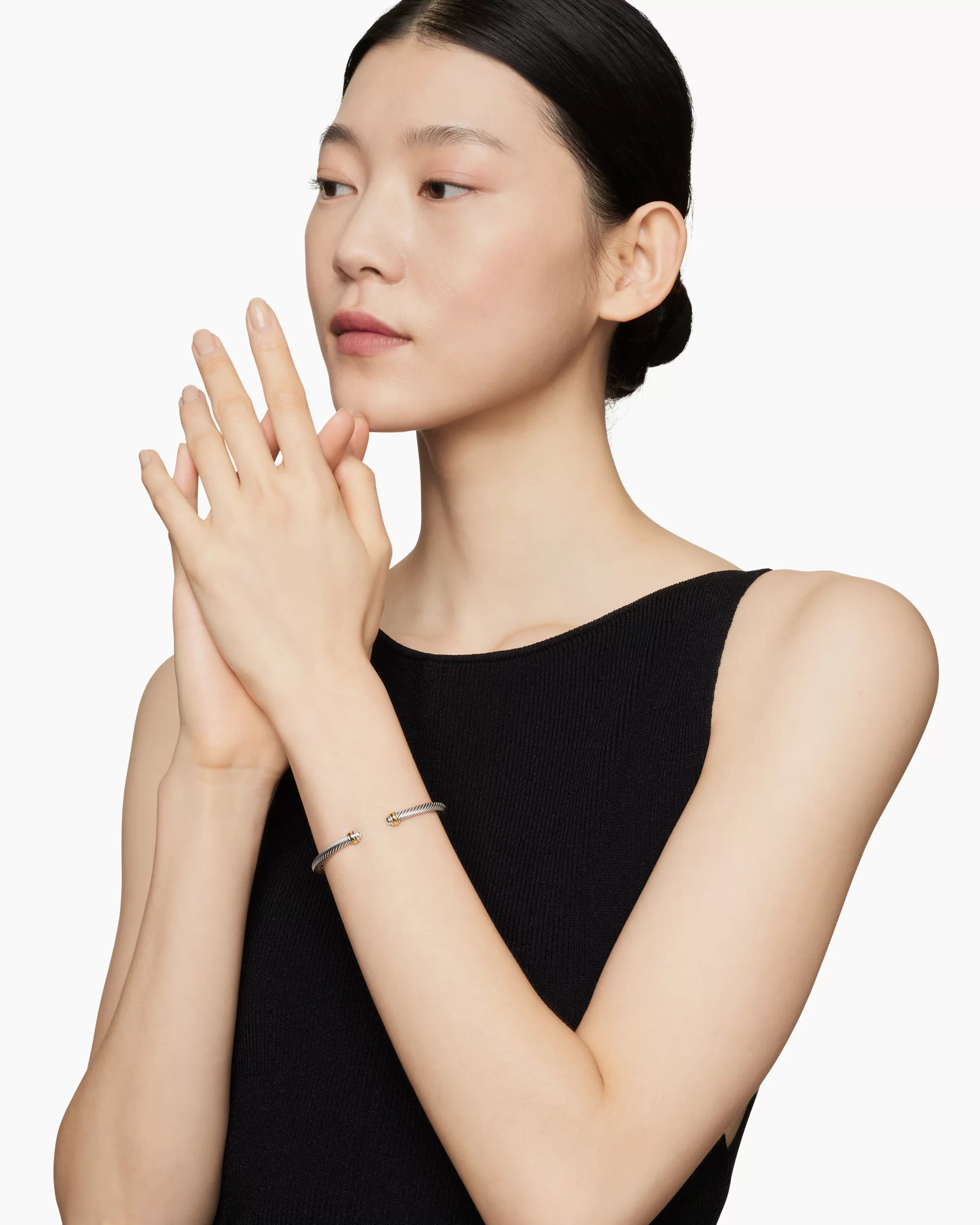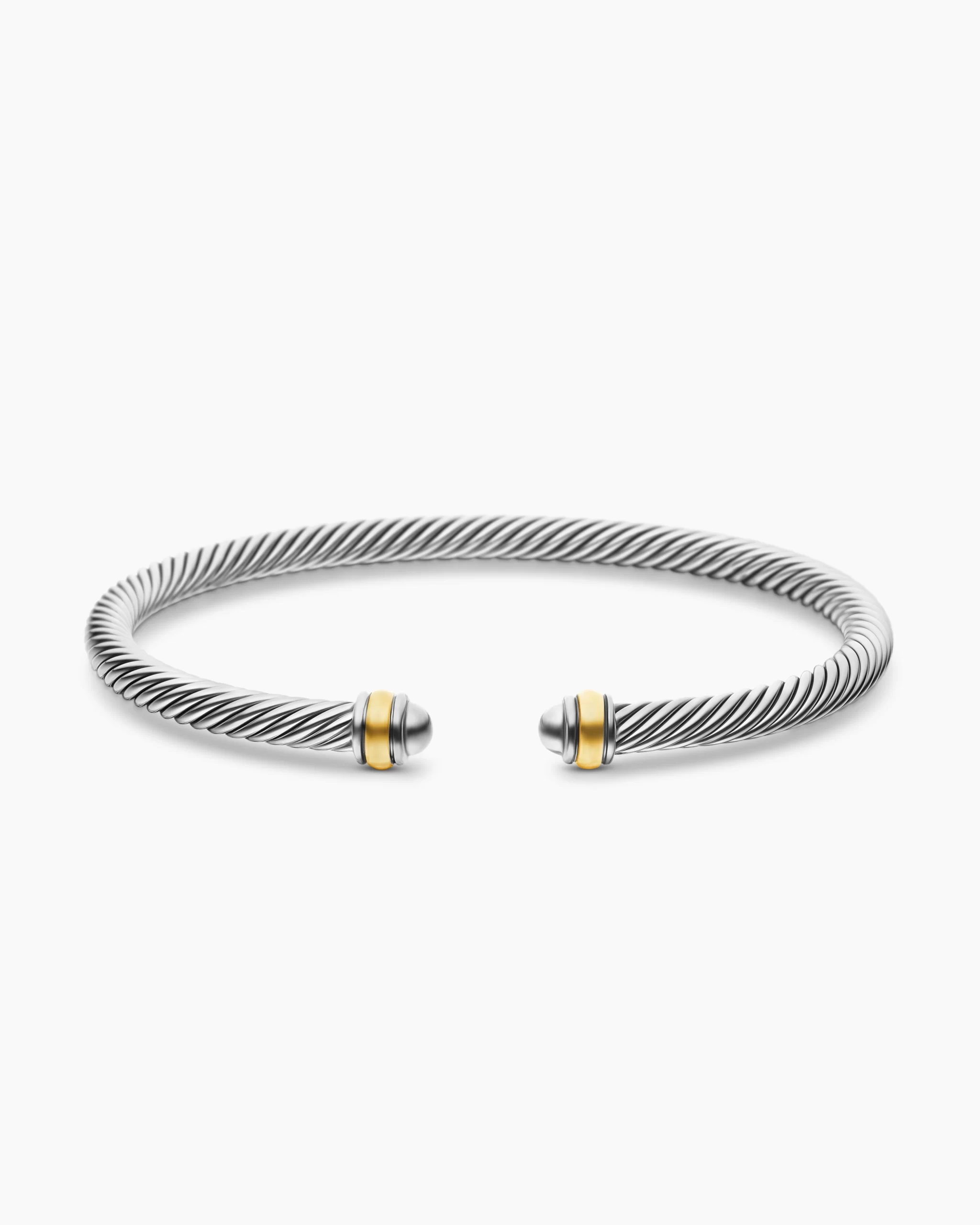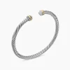 David Yurman’s artistic signature, Cable began as a bracelet that he hand-twisted from 50 feet of wire. For the past 30 years, he has evolved the twisted helix into a myriad of designs. Sterling silver with 18-karat yellow goldBracelet, 4mm