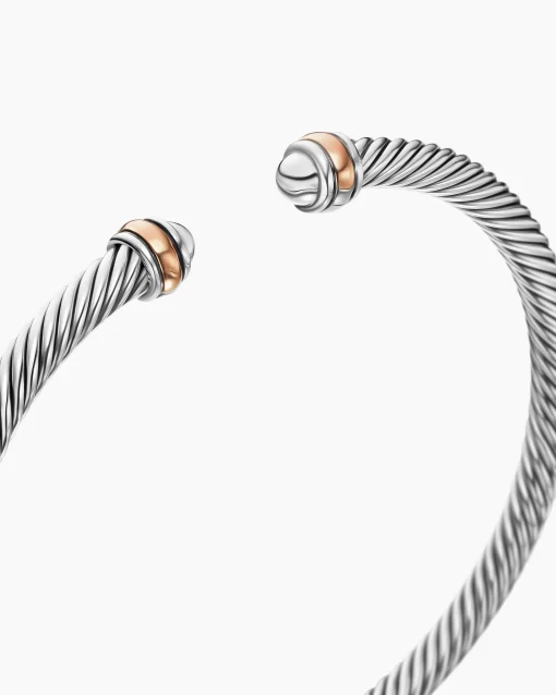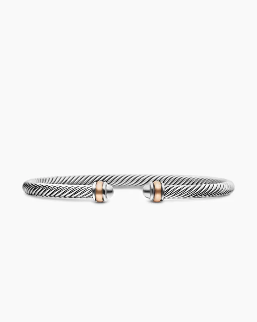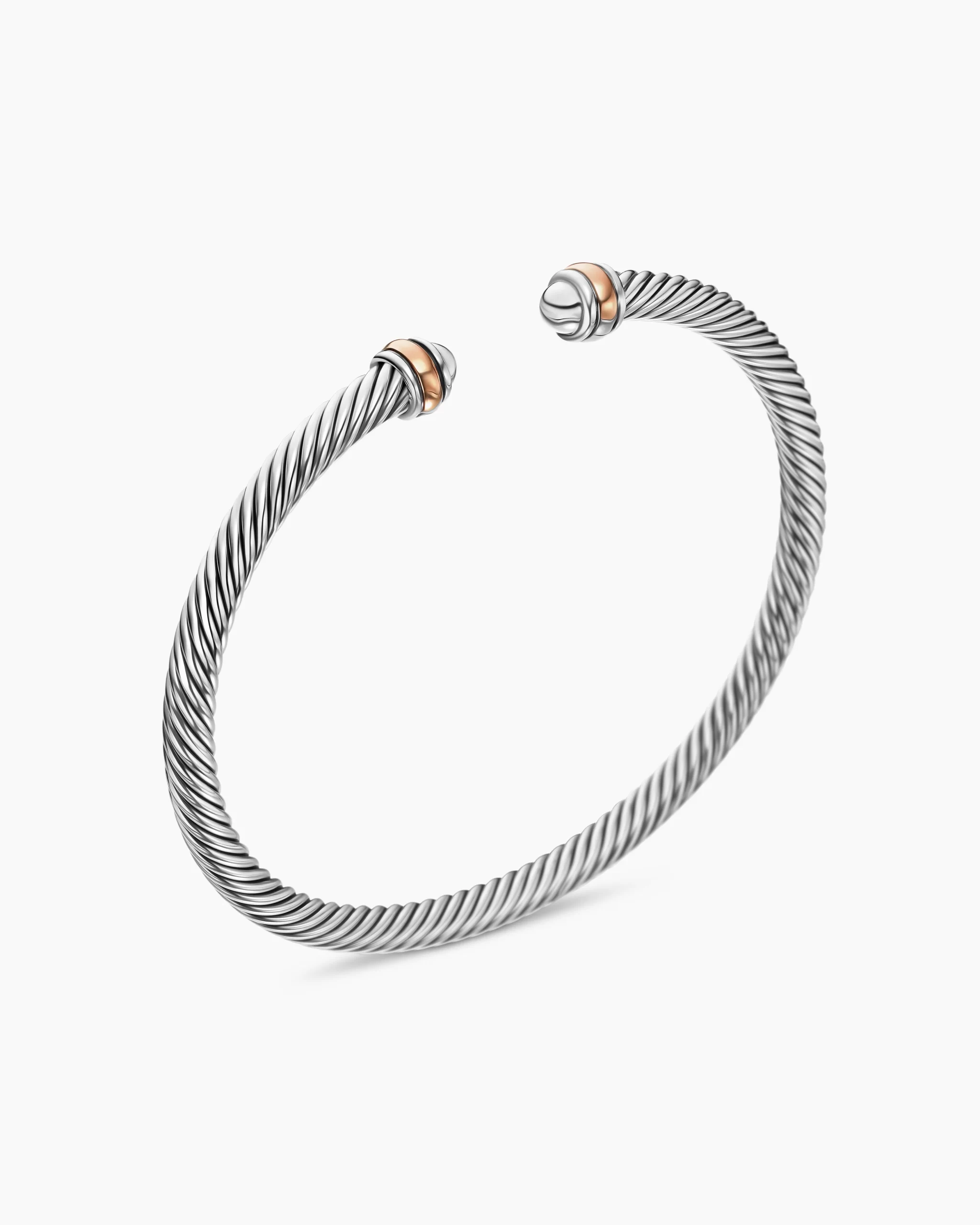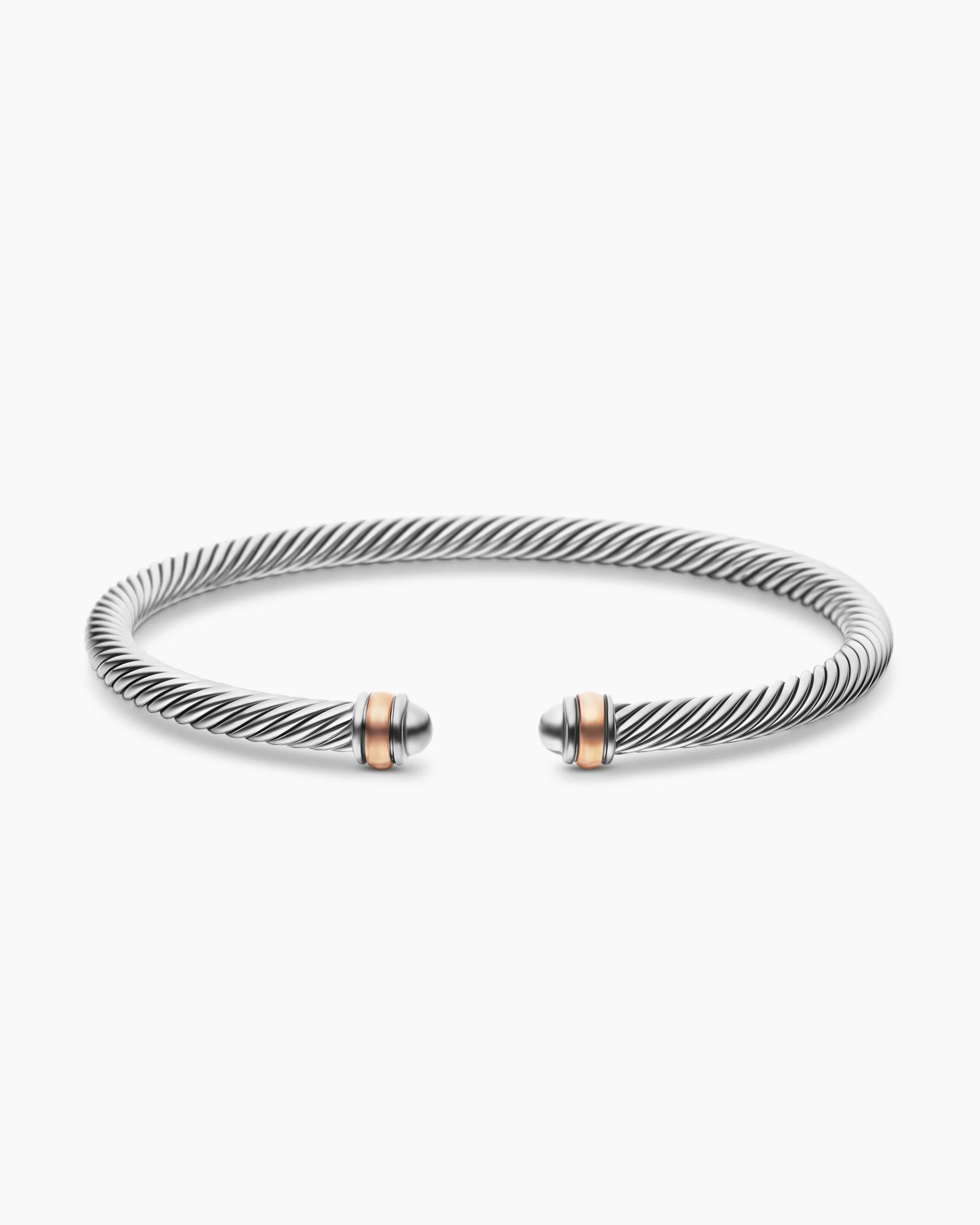 David Yurman’s artistic signature, Cable began as a bracelet that he hand-twisted from 50 feet of wire. For the past 30 years, he has evolved the twisted helix into a myriad of designs. Sterling silver with 18-karat rose goldBracelet, 4mm
