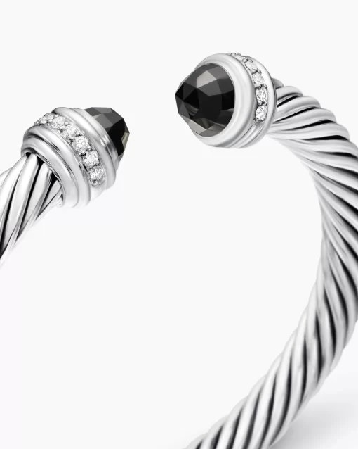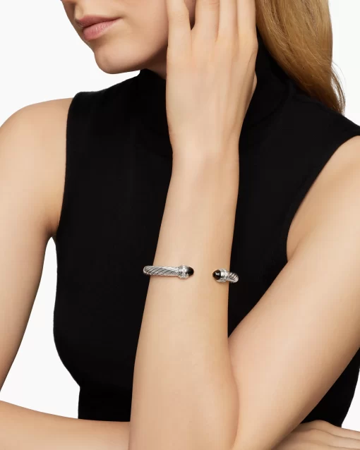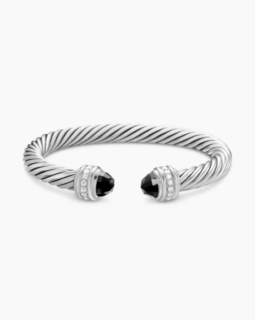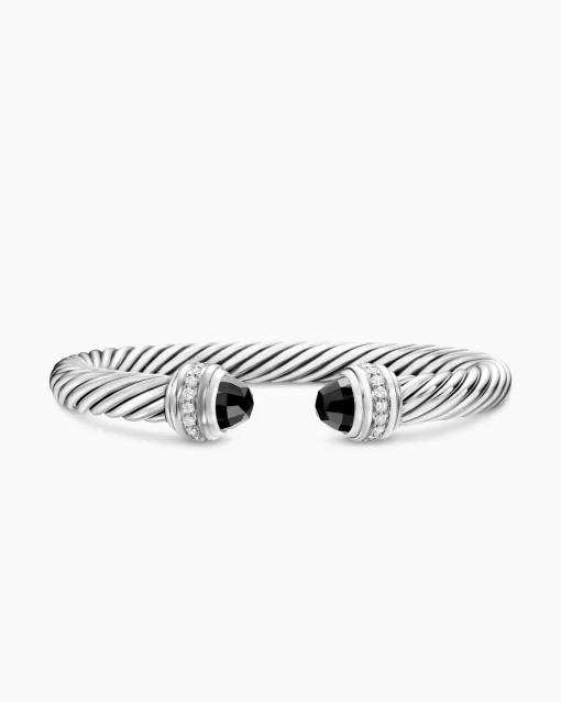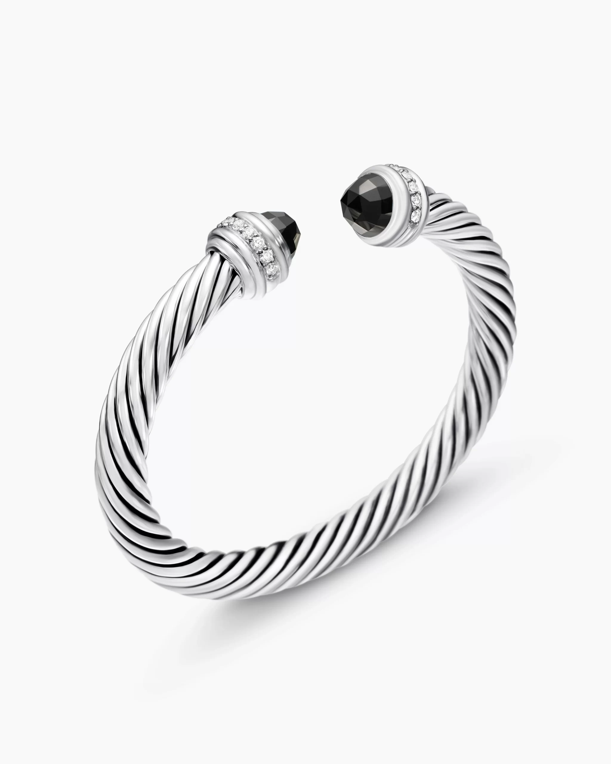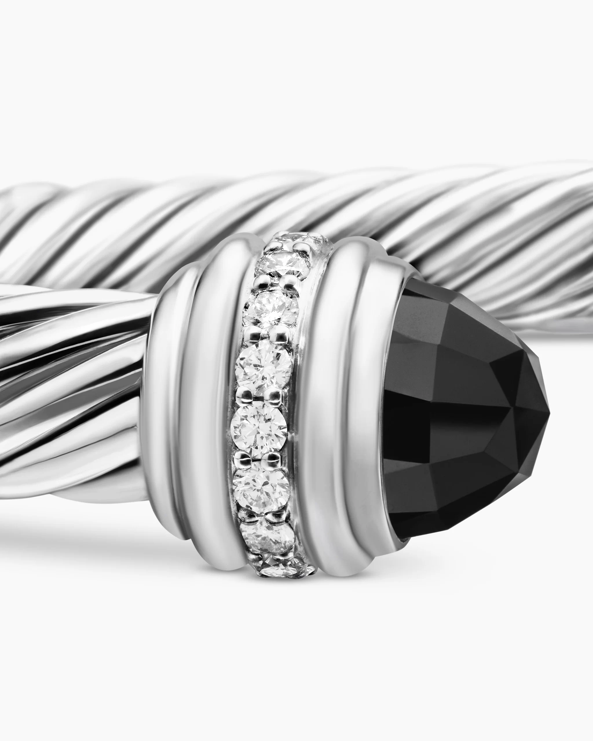 David Yurman’s artistic signature, Cable began as a bracelet that he hand-twisted from 50 feet of wire. For the past 30 years, he has evolved the twisted helix into a myriad of designs. Sterling silverBlack onyxPavé diamonds, 0.41 total carat weightBracelet, 7mm
