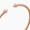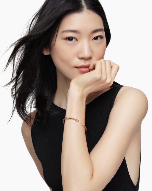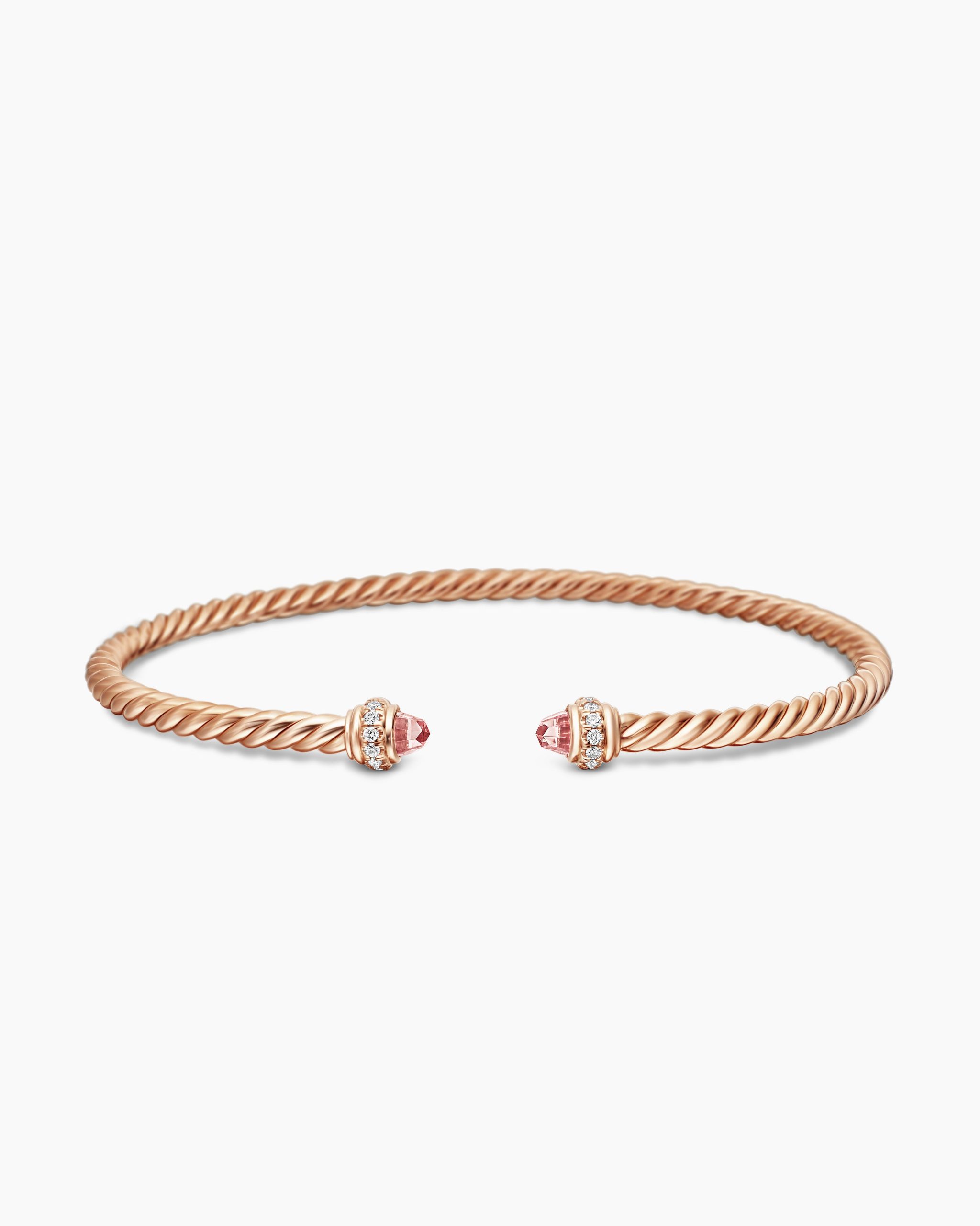 David Yurman’s artistic signature, Cable began as a bracelet that he hand-twisted from 50 feet of wire. For the past 30 years, he has evolved the twisted helix into a myriad of designs. Cablespira® unites artistry and innovation with our exclusive, highly flexible. construction. 18-karat rose goldMorganitePavé diamonds, 0.07 total carat weightBracelet, 3mmCablespira® is a patented DY construction that is highly flexible and exceptionally comfortable to wear.